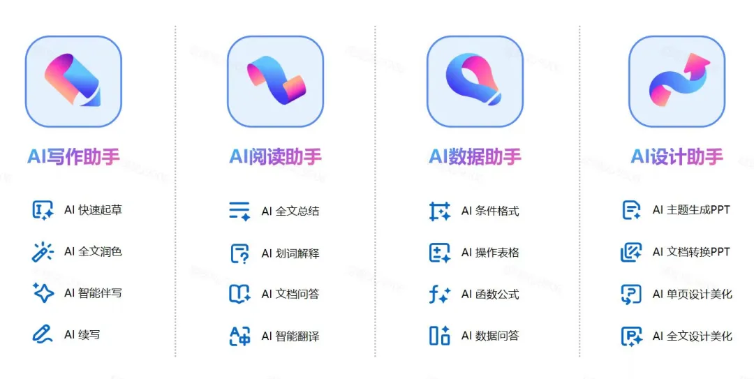 无论你是阅读论文、处理数据、制作汇报,还是整理会议纪要、构建知识库,WPS AI都将成为你专属的智能小助理。