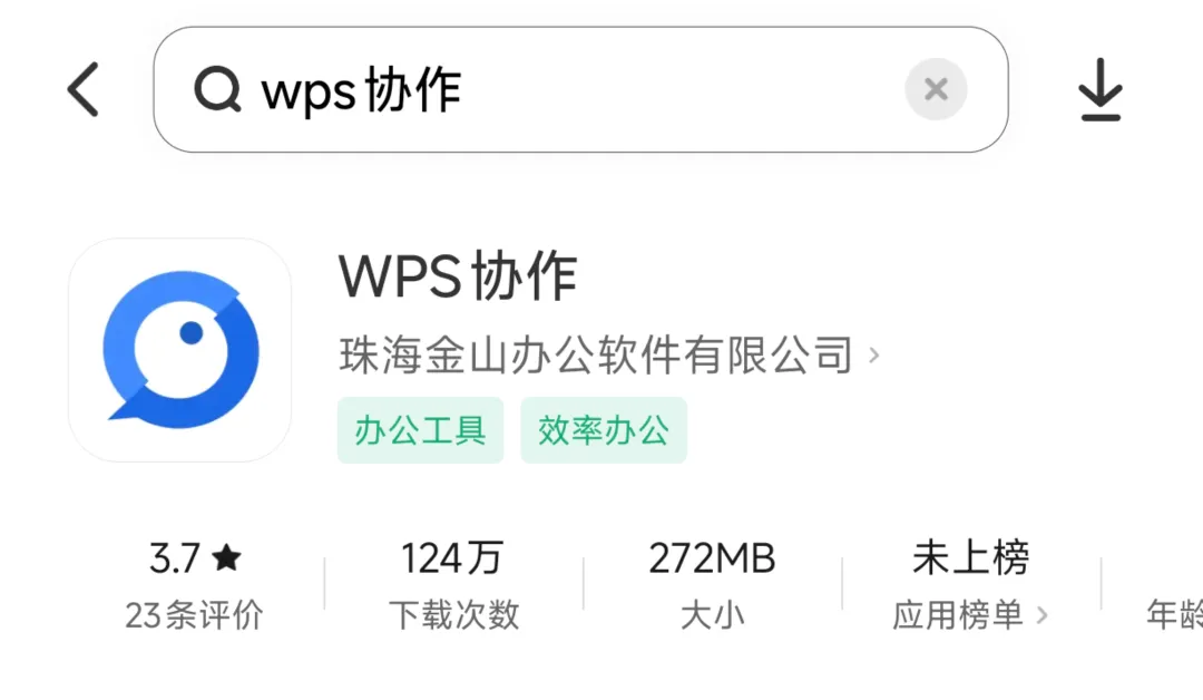 1.手机移动端在应用市场搜索下载“WPS协作”。