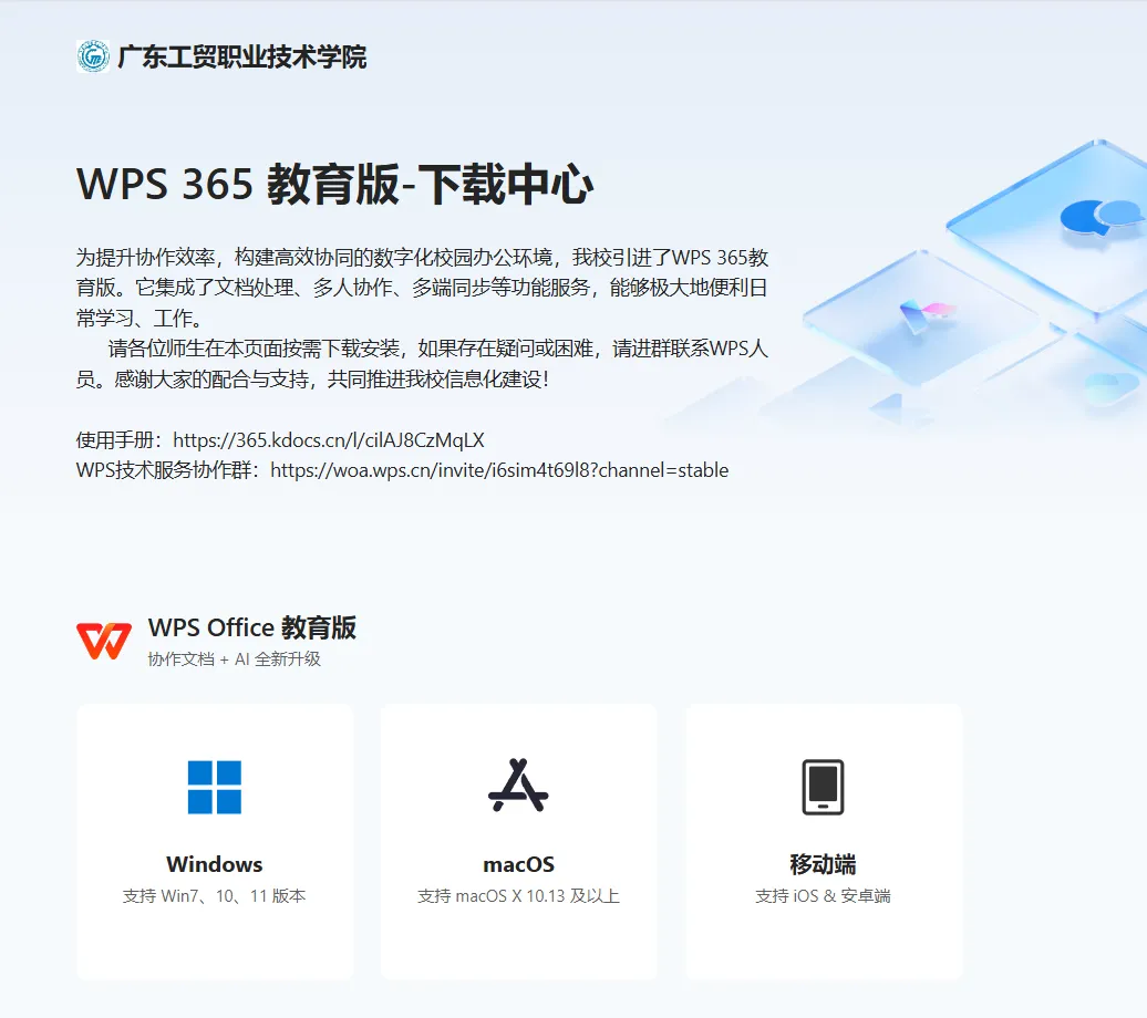附:广东工贸职业技术学院专属WPS 365安装、登录指引
