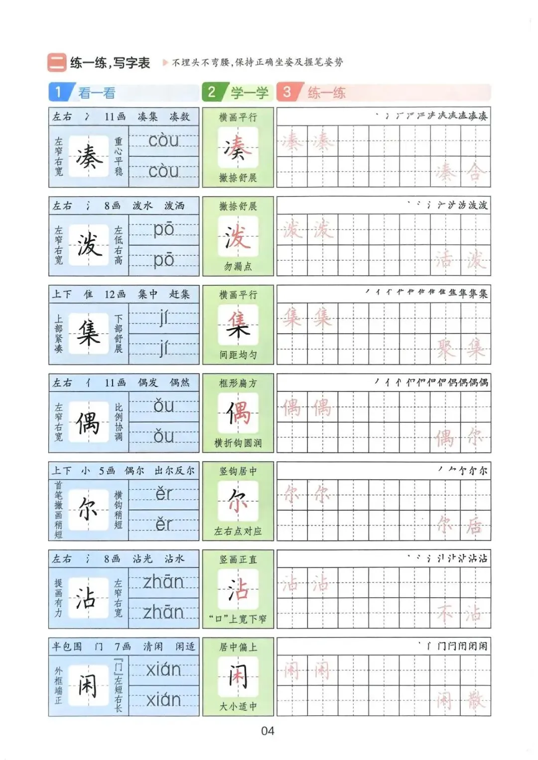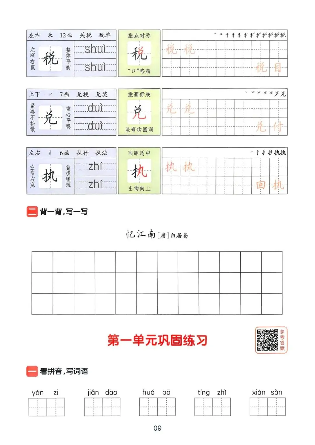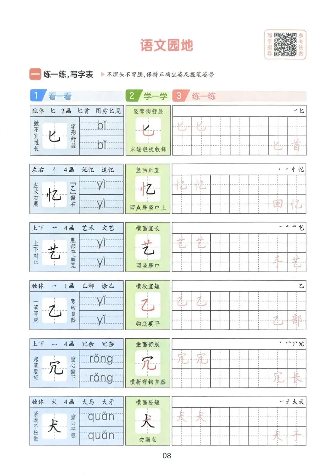 一年级(下)语文《一本三步练好字》