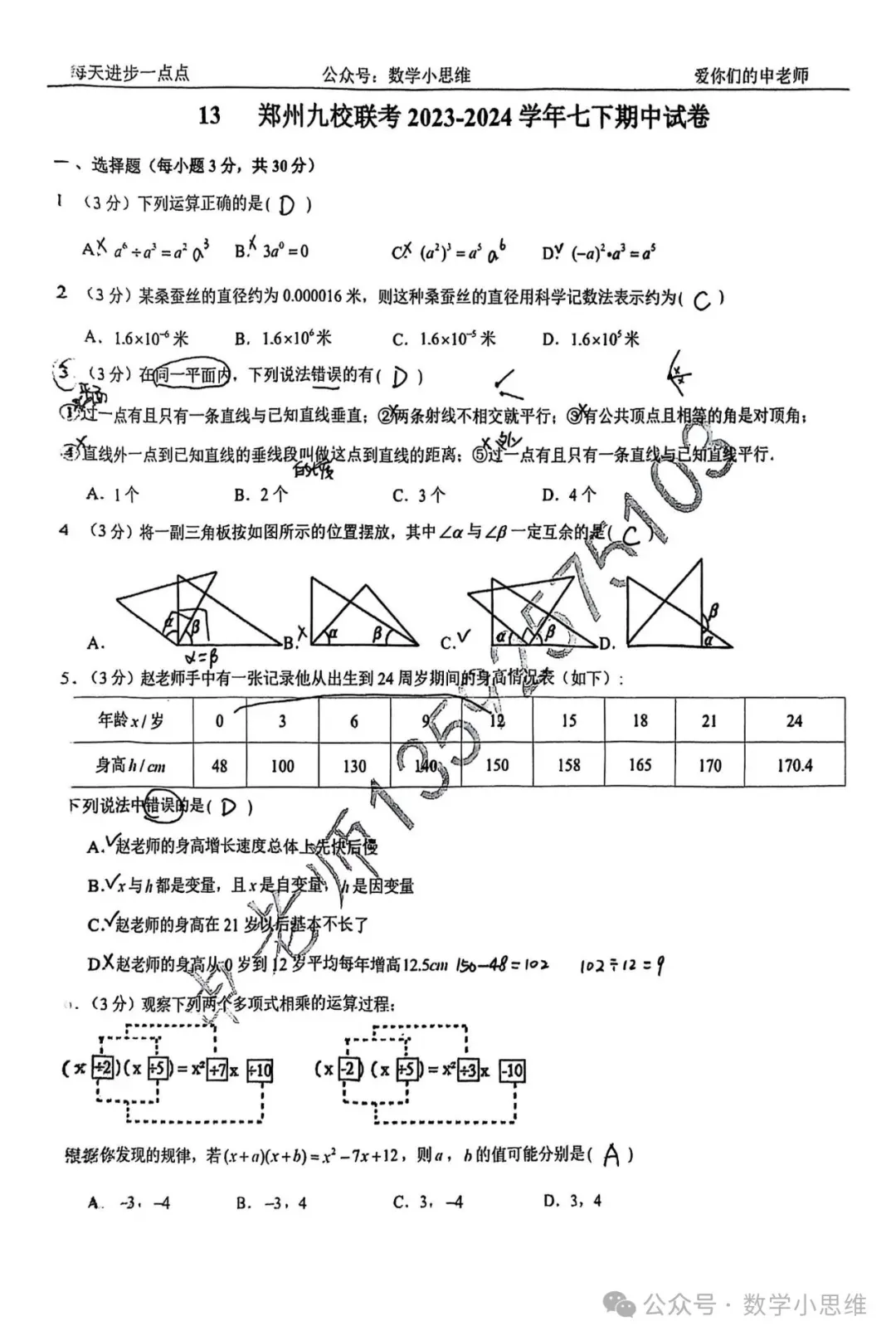 7七下真题集18套郑州四中期中试卷讲解PDF下载(2026版)