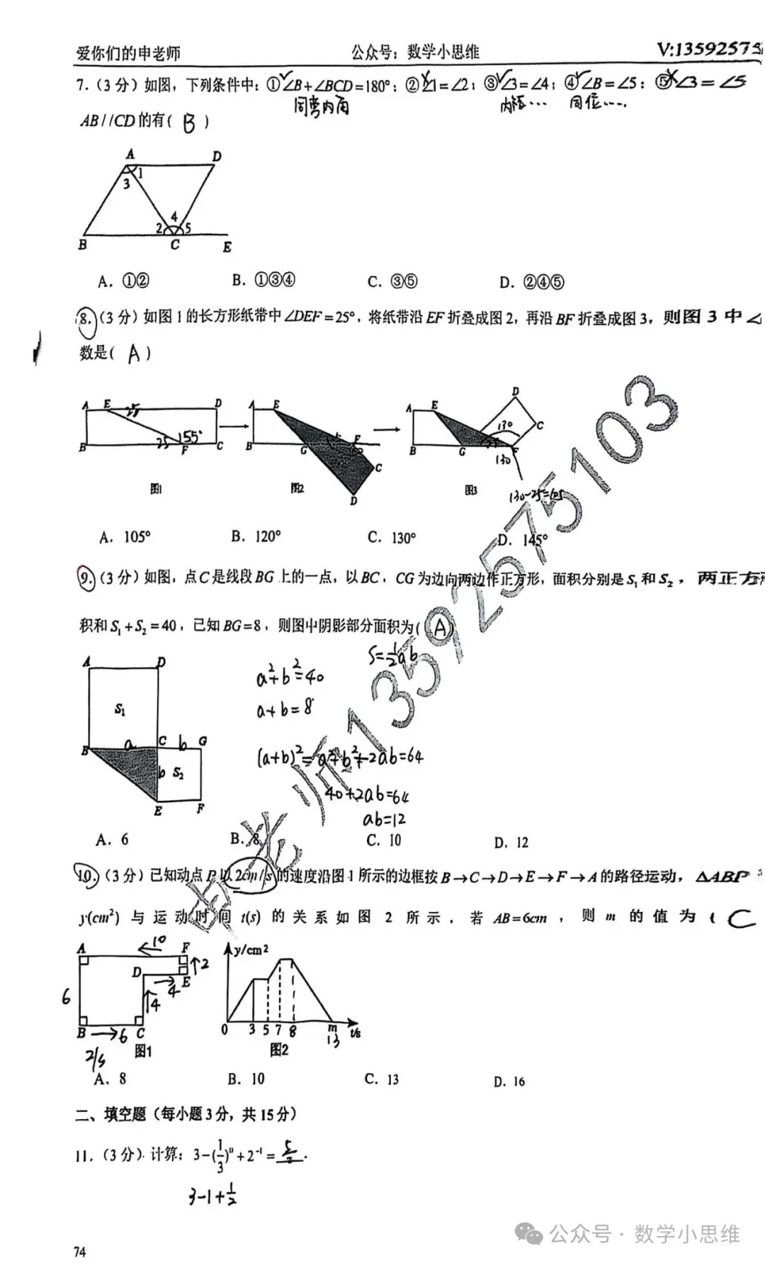 7七下真题集17套省实验中学期中试卷讲解PDF下载(2026版)