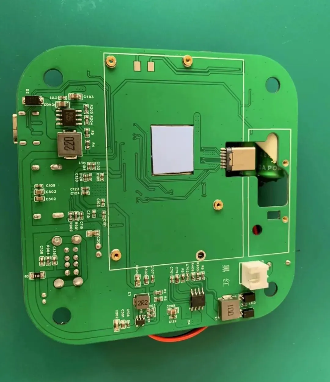 主板背面就简单多了,我对电路这块不熟悉,但从焊接工艺看,手艺挺好的,不是那种满屏的飞线。根据帖子介绍,坚果R1的屏幕排线已经剪掉了,电池小板也裁剪变小了。