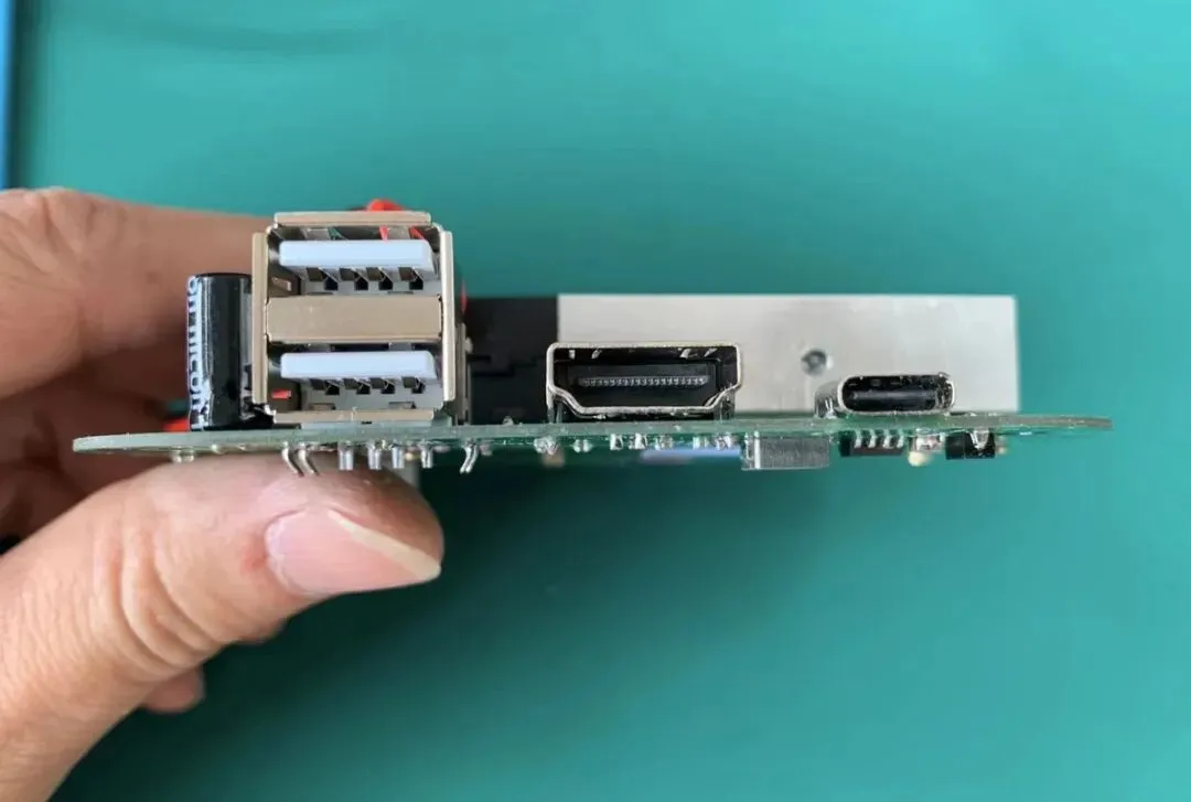 由于坚果R1支持TNT模式,所以C口支持一线传屏,类似三星的DEX模式。因此侧面改造了三个接口,其中HDMI接口支持4K 60Hz画面输出,两个USB接口可插U盘、手柄或键鼠接收器,还有一个Type-C接口用于供电。