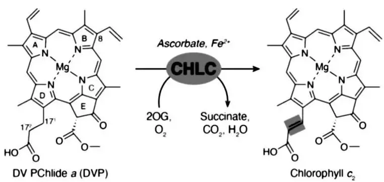 15.硅藻在海洋固碳、沉积物形成及赤潮发生等关键生态过程中发挥重要作用。其叶绿素c(Chlc)合成酶的编码基因及其催化机制已被解析,为海洋藻类捕光系统的合成生物学改造提供了新路径。下列正确的是()