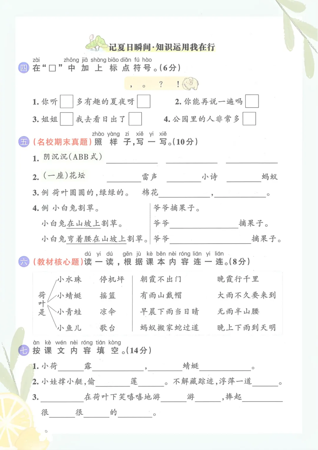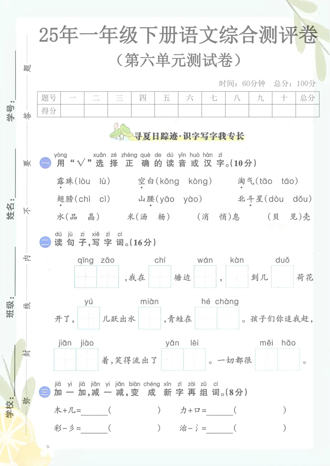 一年级下册语文《第六单元2》共5页,电子版可下载可打印,这份练习资料围绕一年级下册语文第六单元内容进行整理,涵盖多个核心知识点与专项训练内容,适合孩子在课后巩固复习、查漏补缺,帮助进一步加深对单元所学内容的理解与运用。需要的家长可以及时保存打印出来,让孩子练一练,更有针对性地提升语文学习效果。
