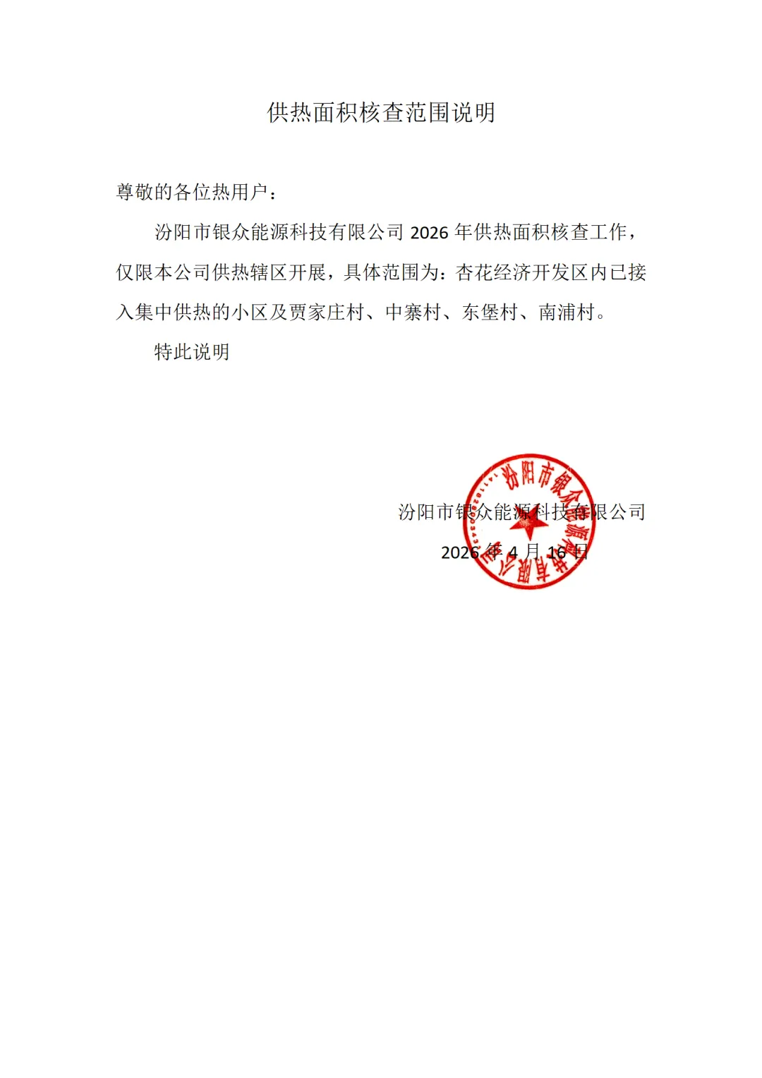 银众能源供热辖区面积核查范围说明