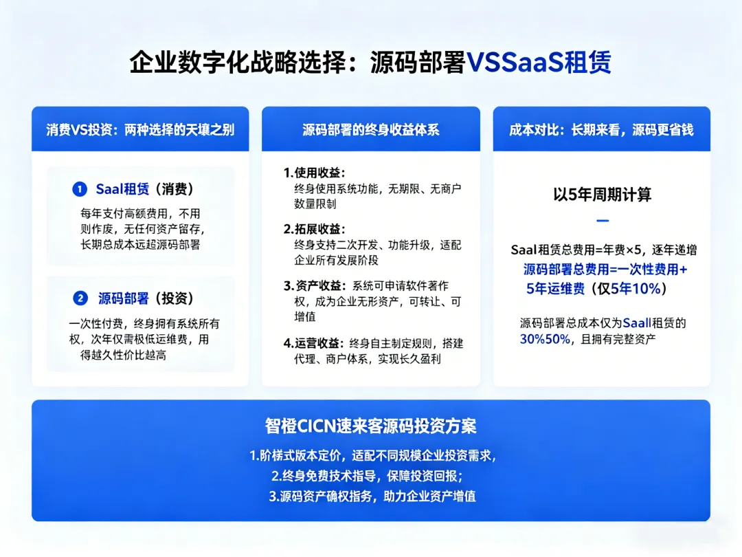 源码部署总成本仅为SaaS租赁的30%-50%,且拥有完整资产。
