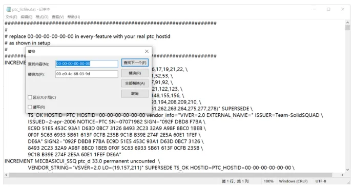 8.将PTC主机ID输入到替换为后的框中,点击全部替换。