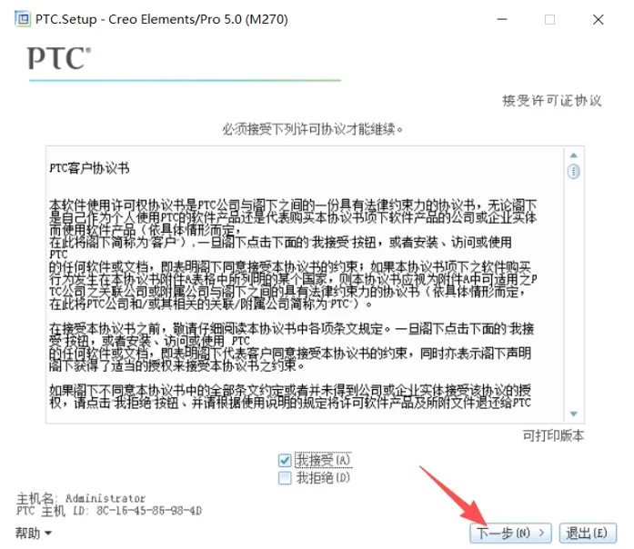 温馨提示:这里的“PTC主机ID”每台电脑都不同,请以安装电脑显示的ID为准。