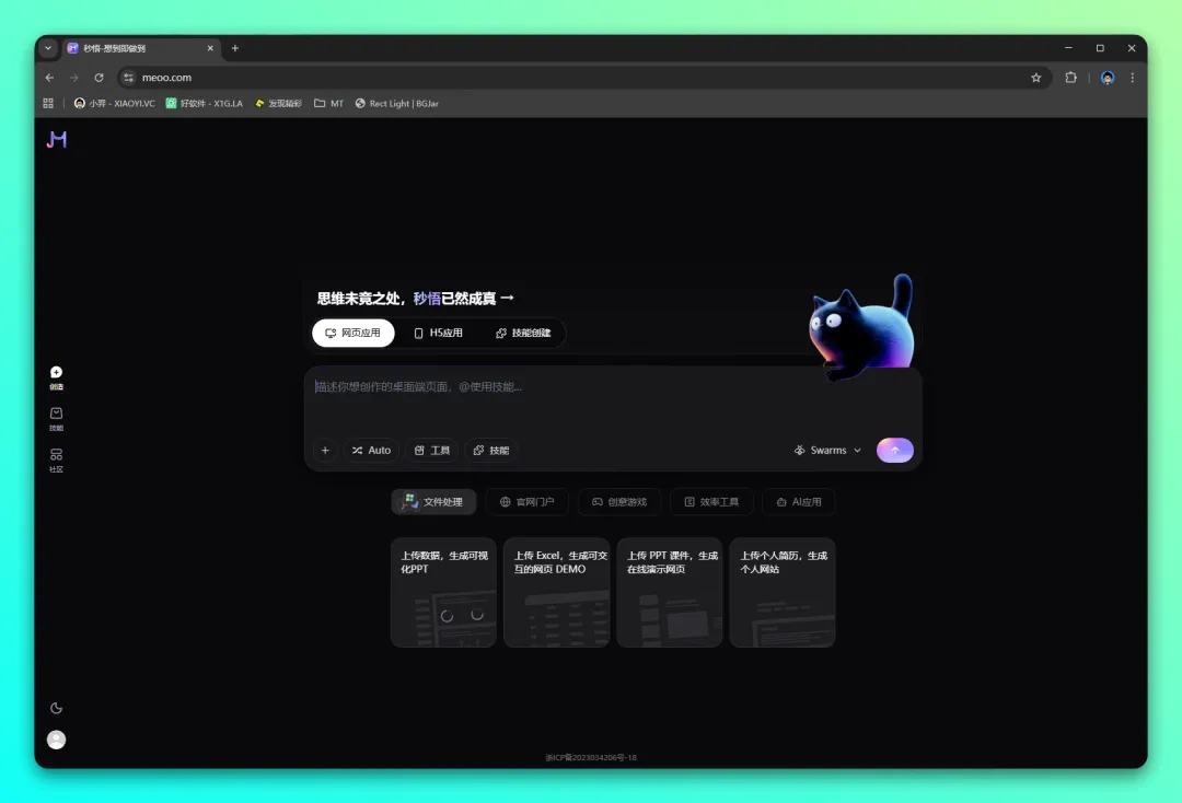 阿里 ATH 出品 AI 开发工具「Meoo」定位 0 门槛 AI 开发工具,旨在让每个用户都能快速将创意转化为生产级产品。用户通过 Meoo 无需任何编程基础,只需用自然语言描述想法,最快1分钟就能自动生成前端后端完整的网站、H5页面,并在阿里云上一键部署上线。