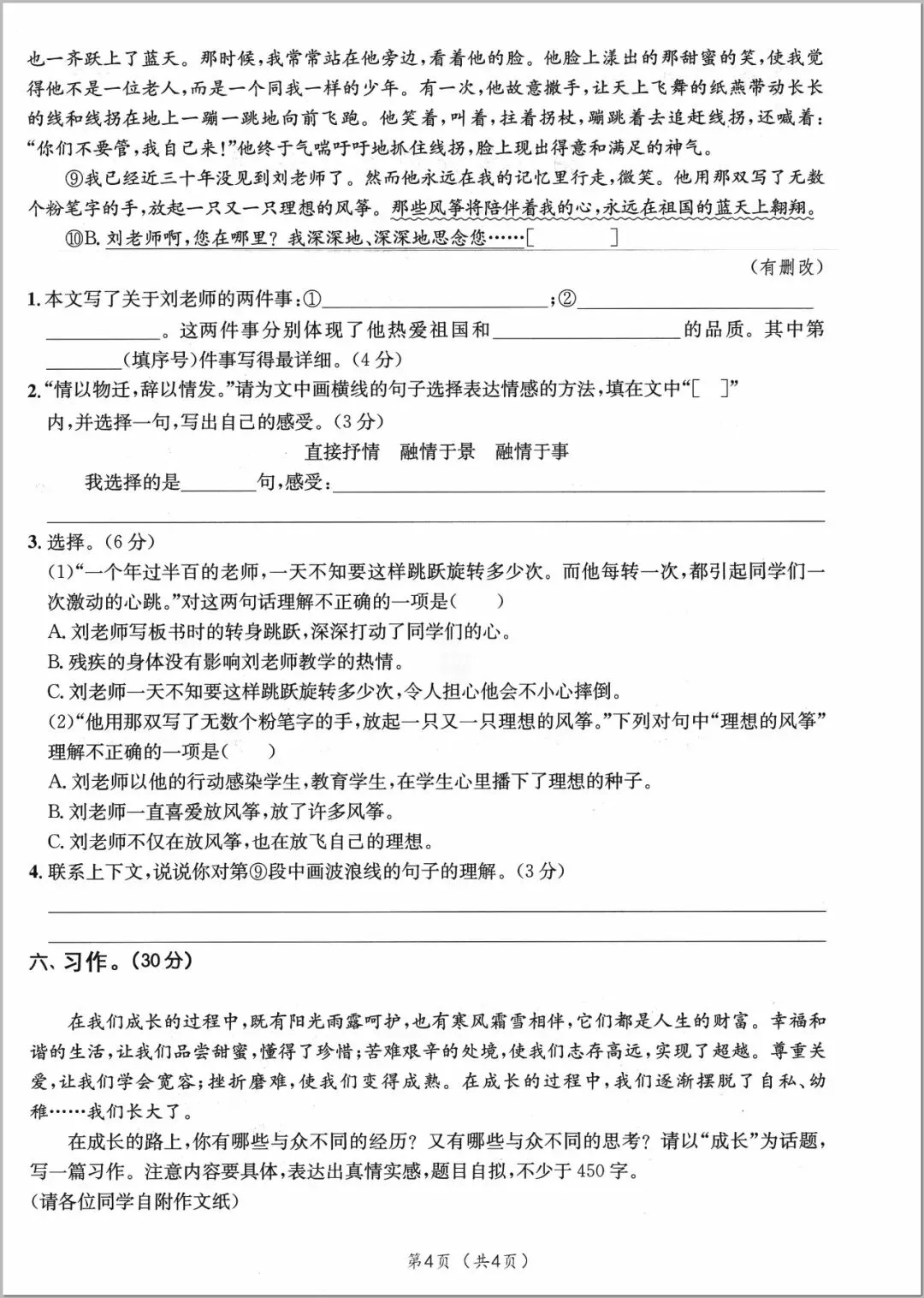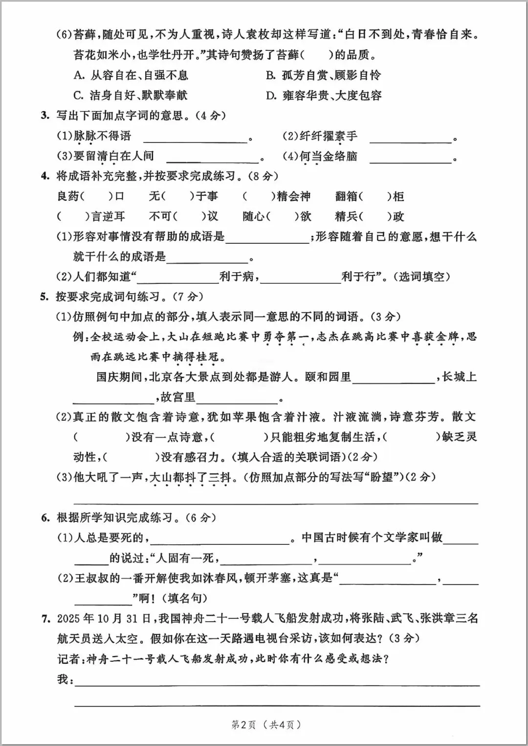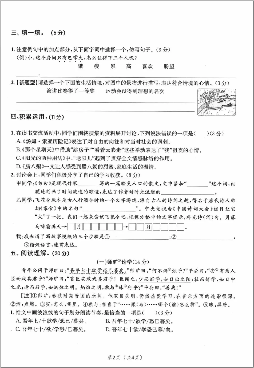 2026年人教部编版六年级下册(语文)《期中考试综合达标测试卷》(共5套•含答案)高清可打印