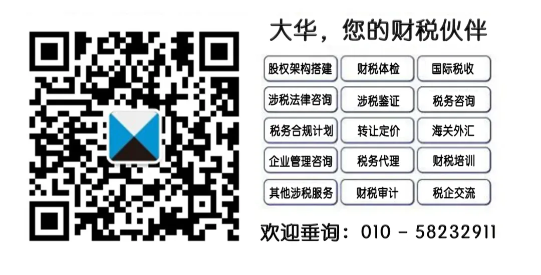 大华税务成立于2001年,是拥有近30年行业积淀的AAAAA级税务师事务所、涉税服务信用等级TSC5,大华税务是国内最早涉足税务咨询服务的机构之一,连续多年在中税协综合排名中位居行业前列。大华税务在中国的服务网络遍布全国36座核心城市,提供全链条财税、海关、外汇等综合解决方案,服务企业超10000家。