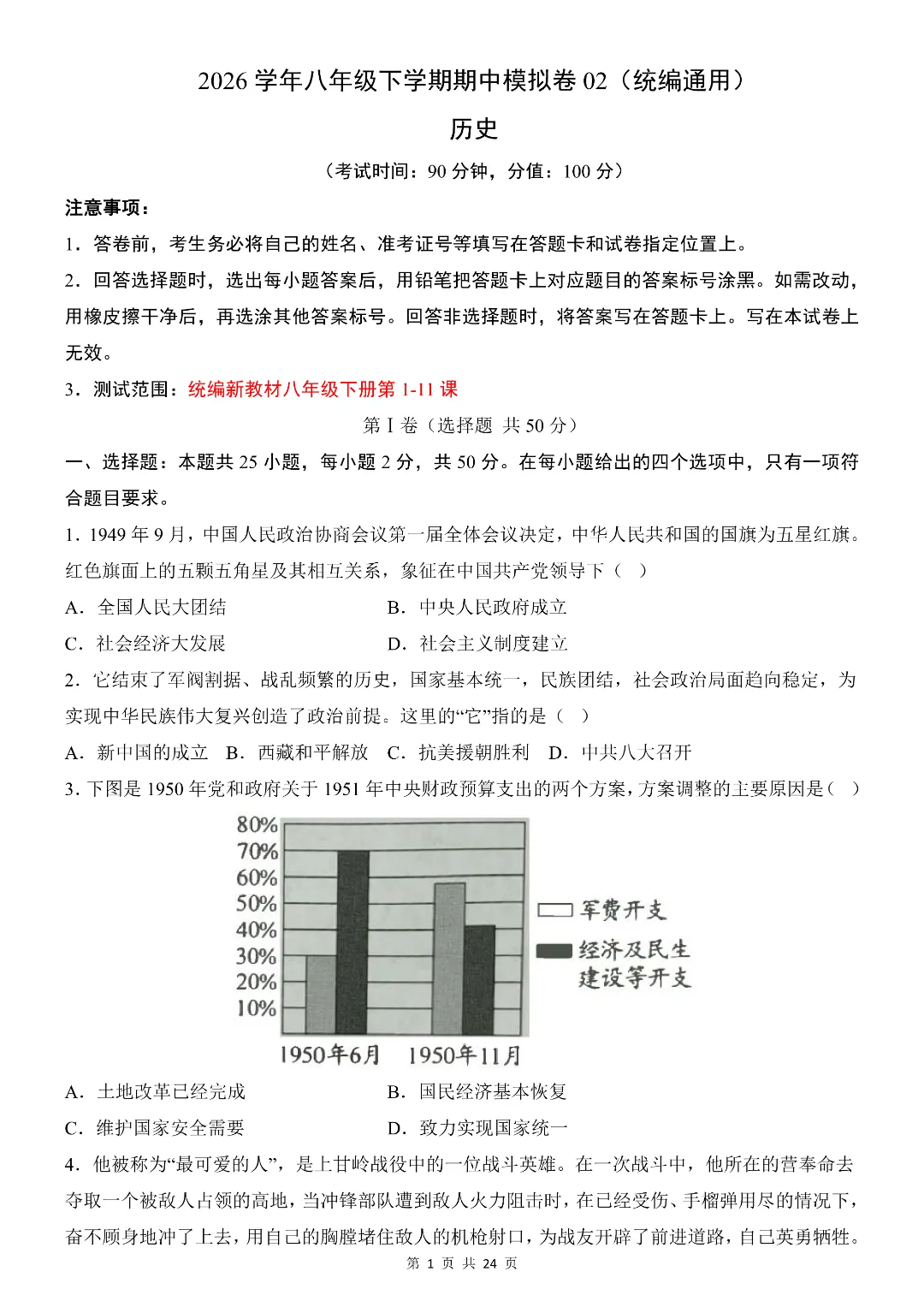 2026年新八年级下册初二统编版历史《期中培优测试卷》含答案解析‖可打印