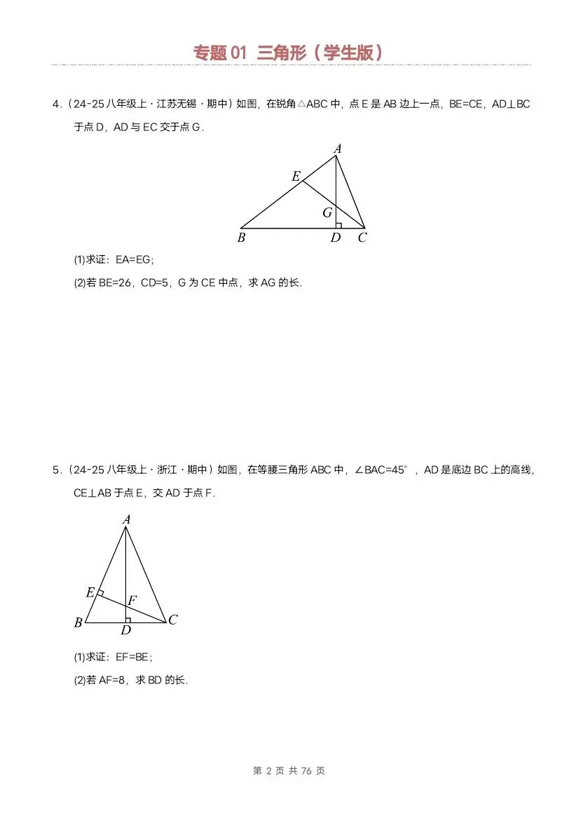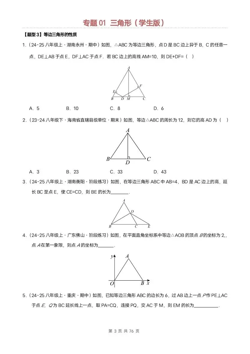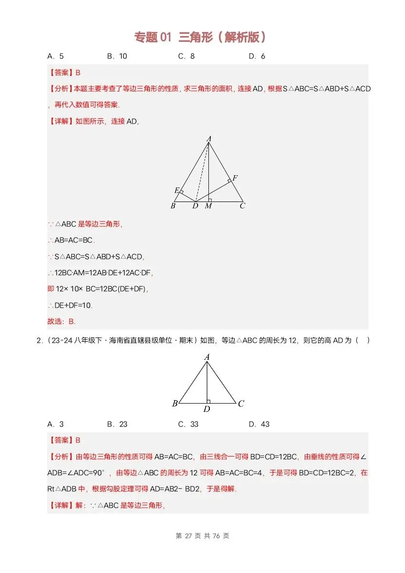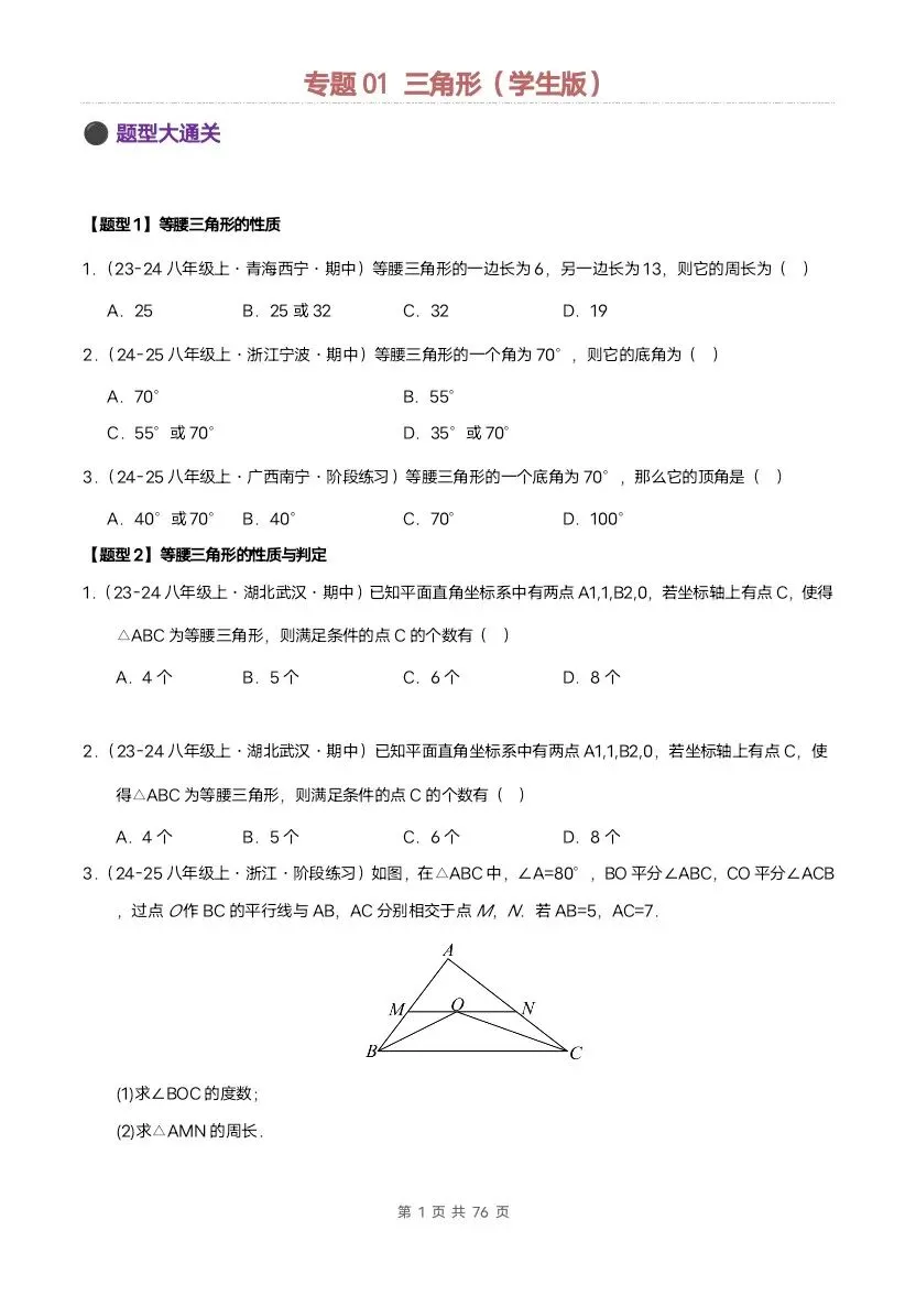 26春新八年级下册北师版期中专项·三角形(13大题型)含答案 完整电子版可打印!家长关注收藏,让孩子用高效的方法学透知识点,用优质的资源为学习赋能,在成长的赛道上稳步前行,轻松提分!