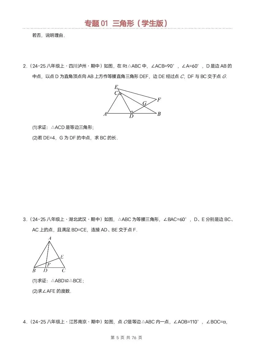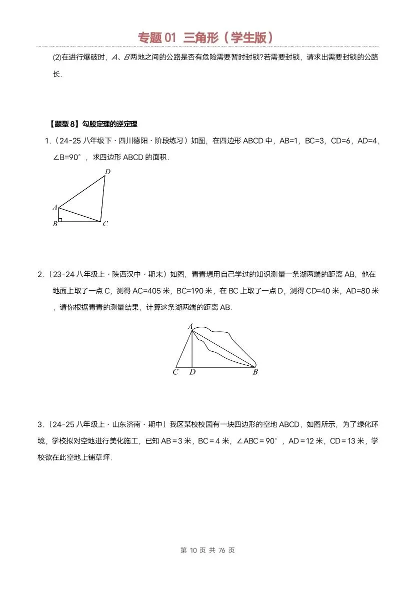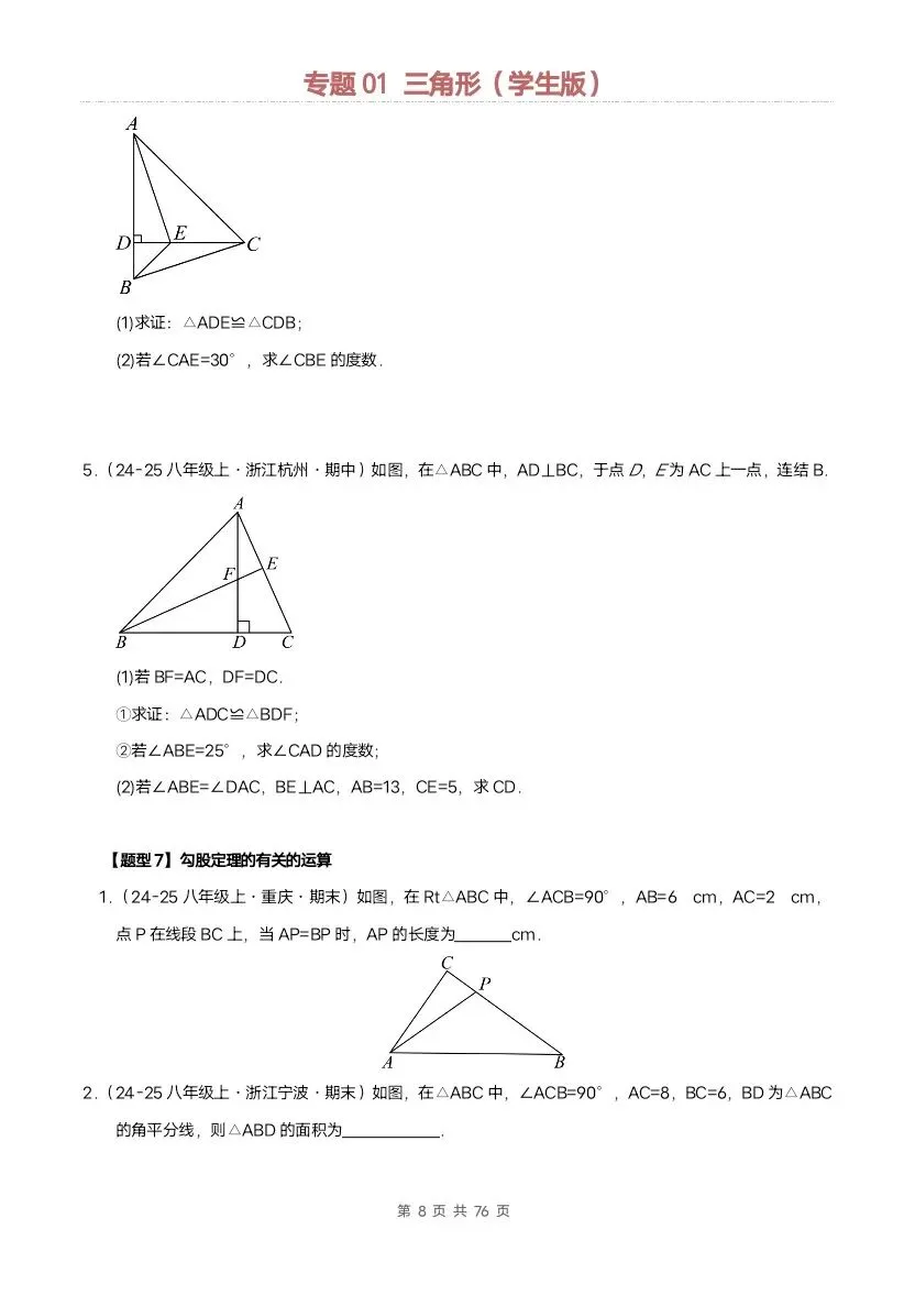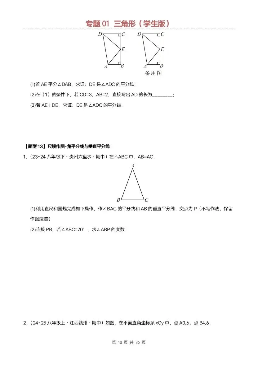 26春新八年级下册北师版期中专项·三角形(13大题型)含答案 完整电子版可打印!家长关注收藏,让孩子用高效的方法学透知识点,用优质的资源为学习赋能,在成长的赛道上稳步前行,轻松提分!