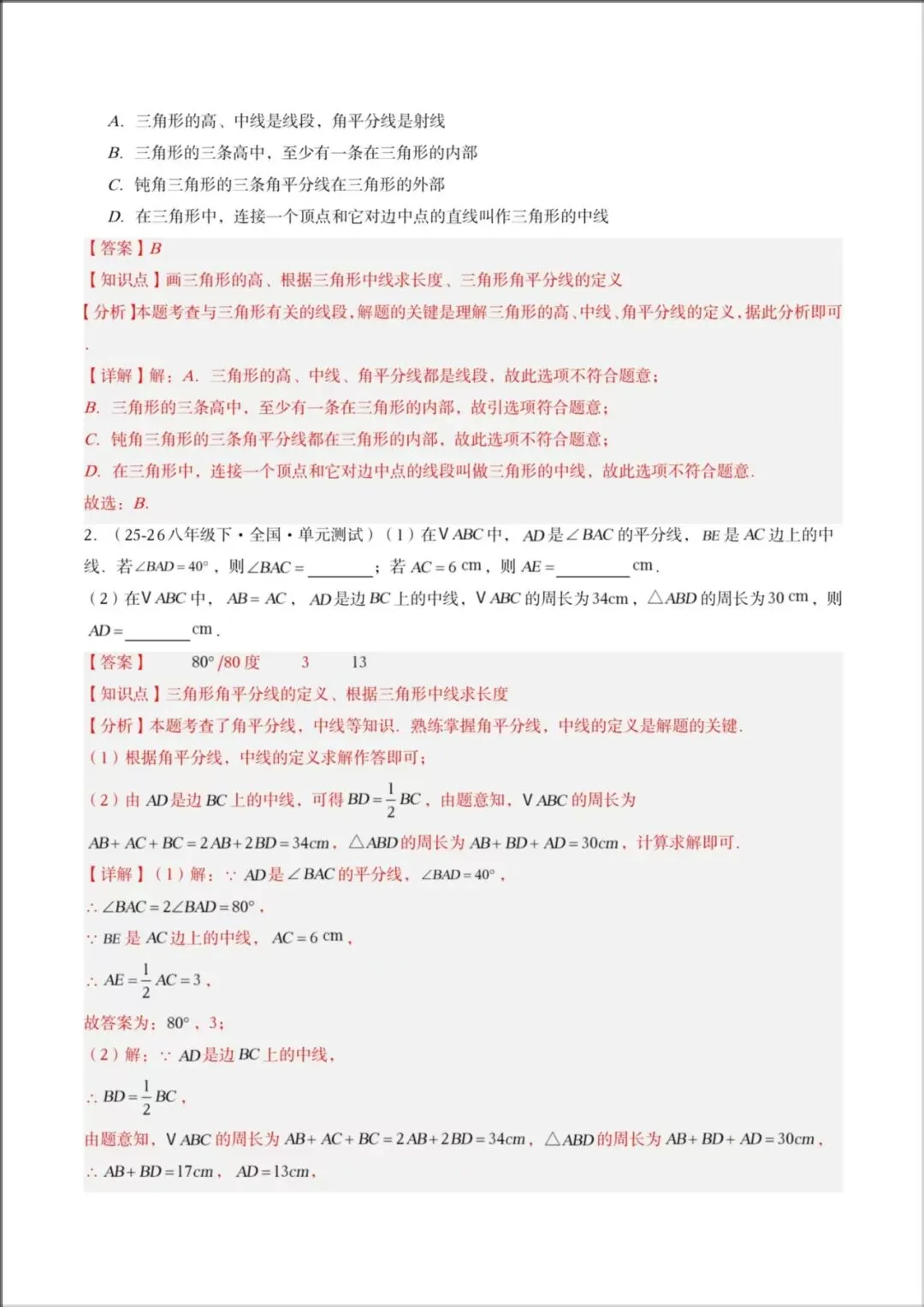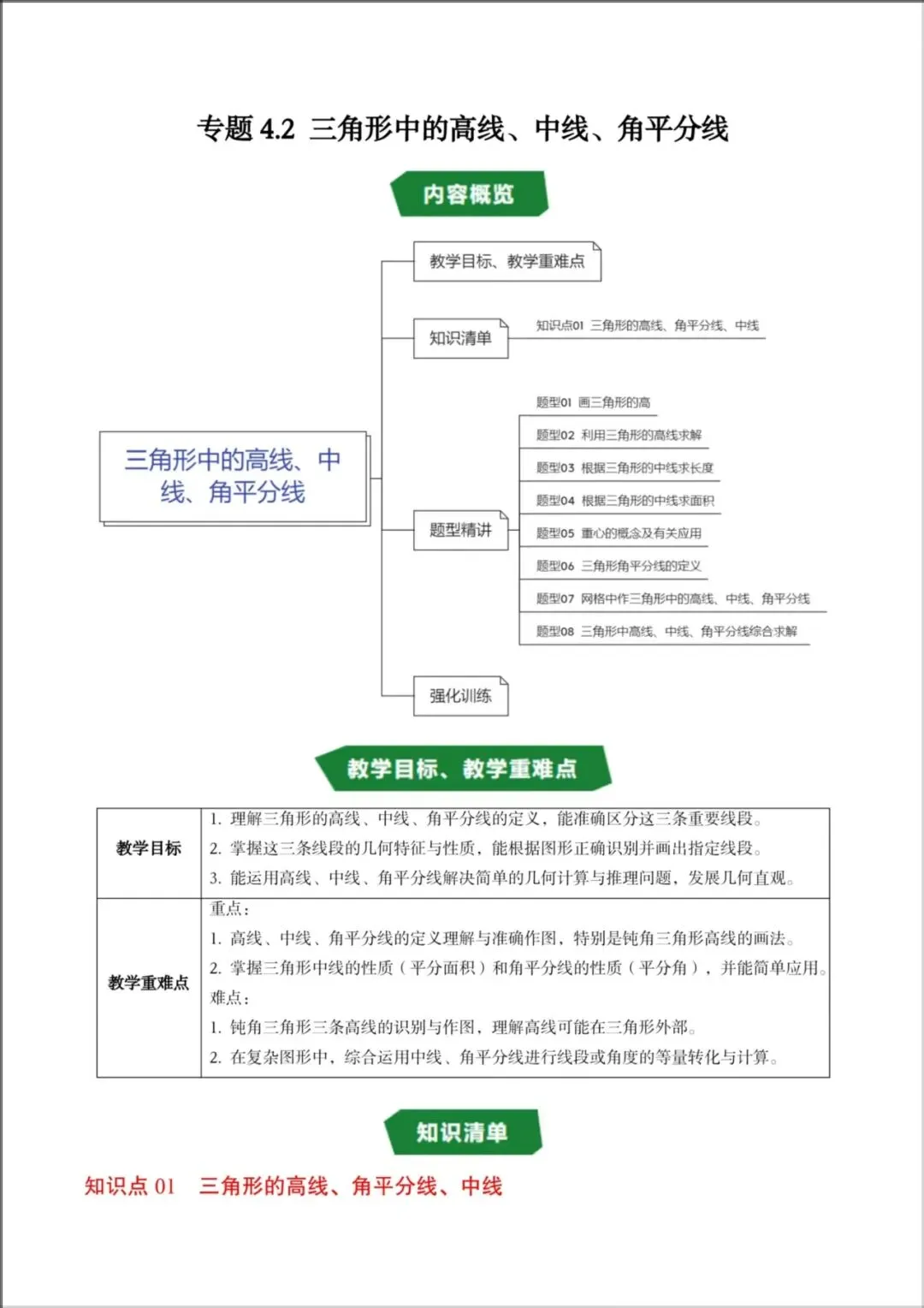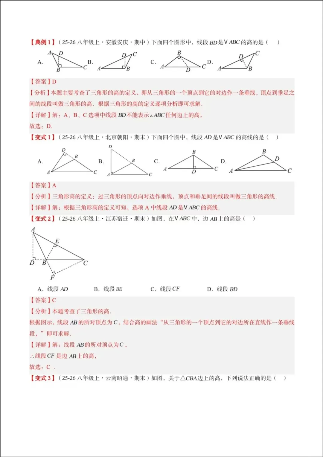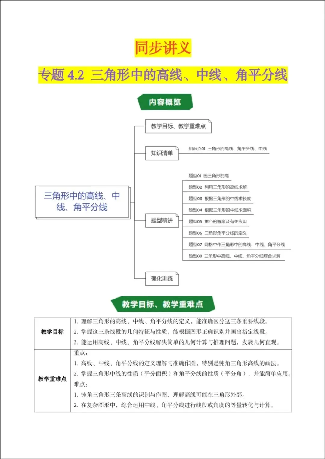 2026春新版教材【北师版】七年级下册〈数学〉同步讲义《三角形中的高线、中线、角平分线》知识清单+题型精讲,可下载打印!