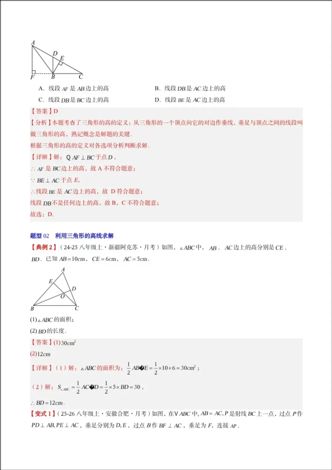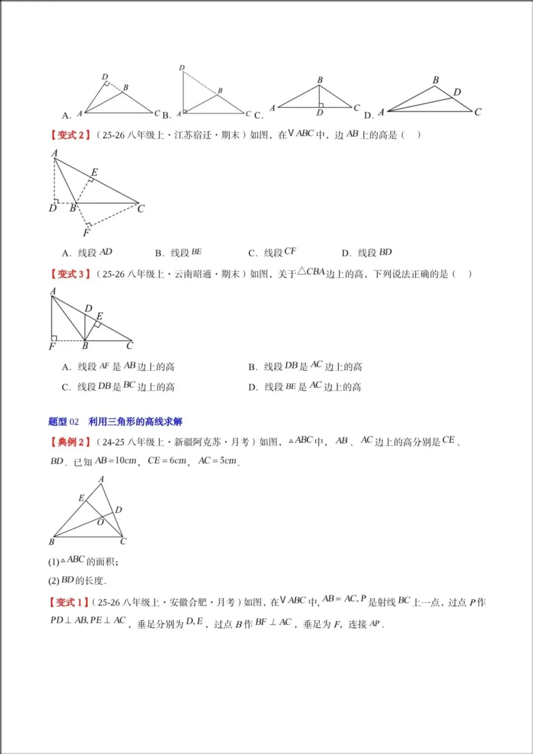 题型02:利用三角形的高线求解