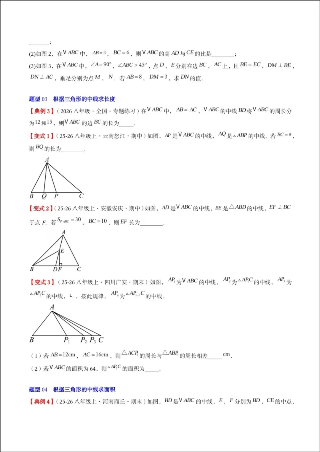 题型03:根据三角形的中线求长度