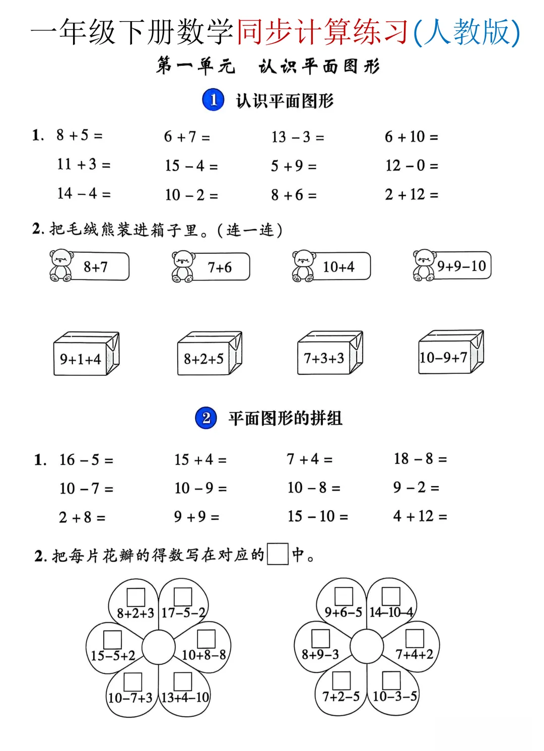 一年级下册数学:同步计算练习《人教版》,电子版可打印 家长们,↑关↑我领资料 今天老师分享一年级下册数学:同步计算练习《人教版》精选资料给家长,下载电子版打印给孩子记背练习! 提示:文末有完整电子版下载方式 (因篇幅有限,仅显示部分内容) 先加老师好友,方便接收完整资料 若已是好友(同头像),就不要重复加!(家长多,若没及时回复,请耐心等待) 每天150位+家长在领取!