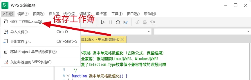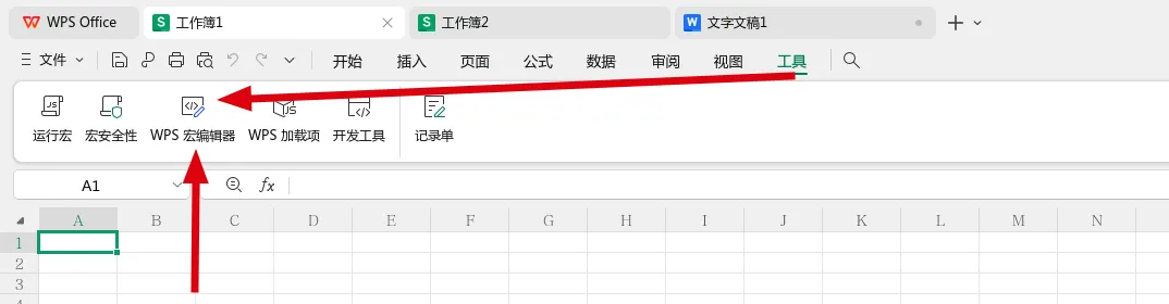 2.在麒麟系统中打开WPS并新建WPS工作簿,在功能区可以看到WPS宏编辑器,单击进入