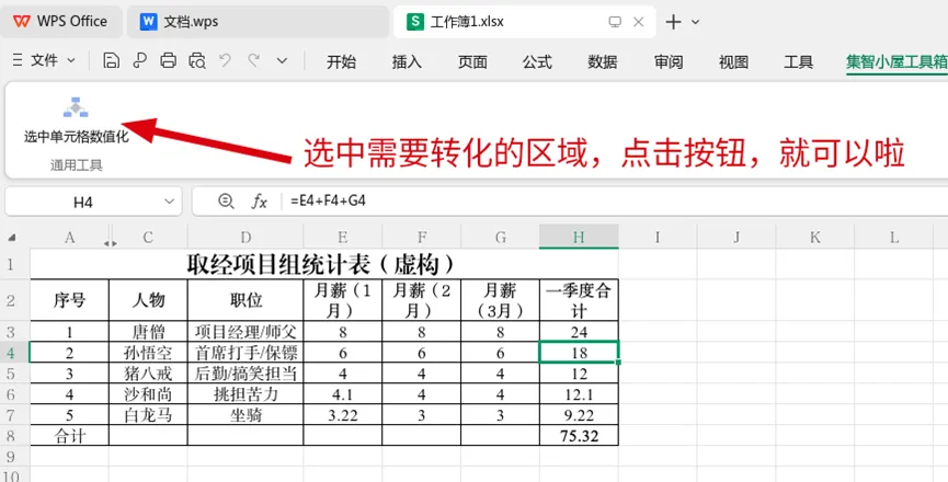 1.要实现的功能是WPS表格中的“仅保留数值”功能