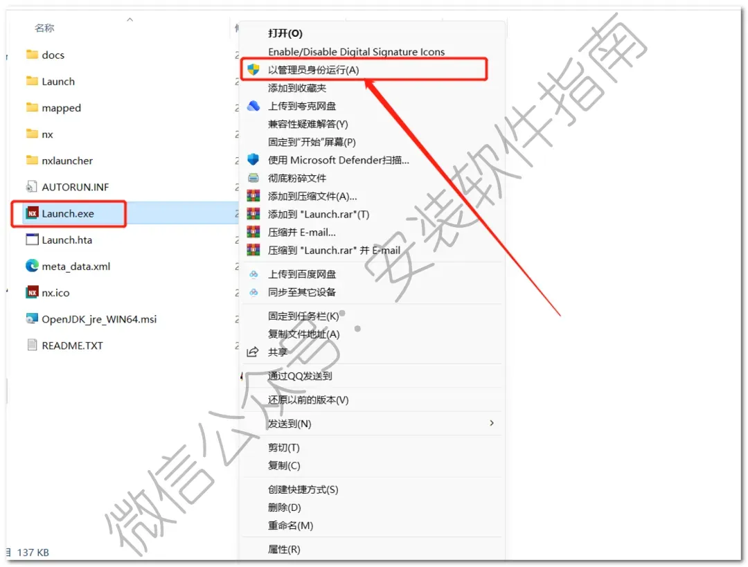 17、返回到【UG NX2212(64bit)】-【Setup】文件夹,鼠标右击【Launch】选择【以管理员身份运行】