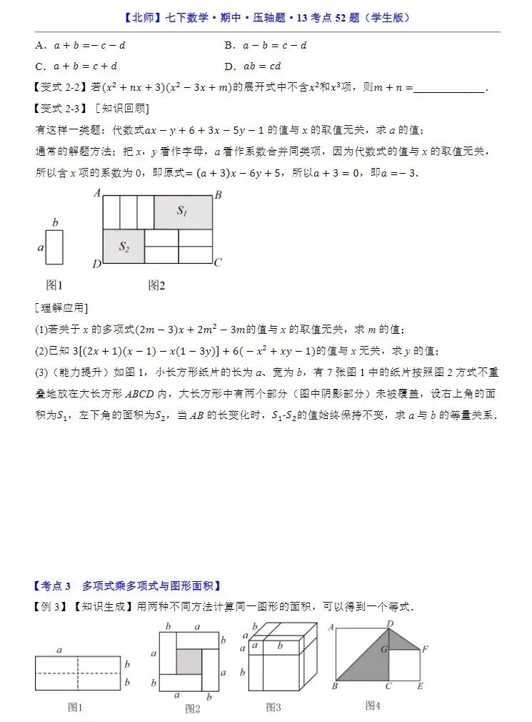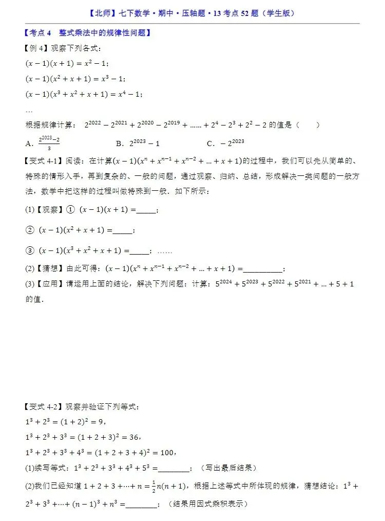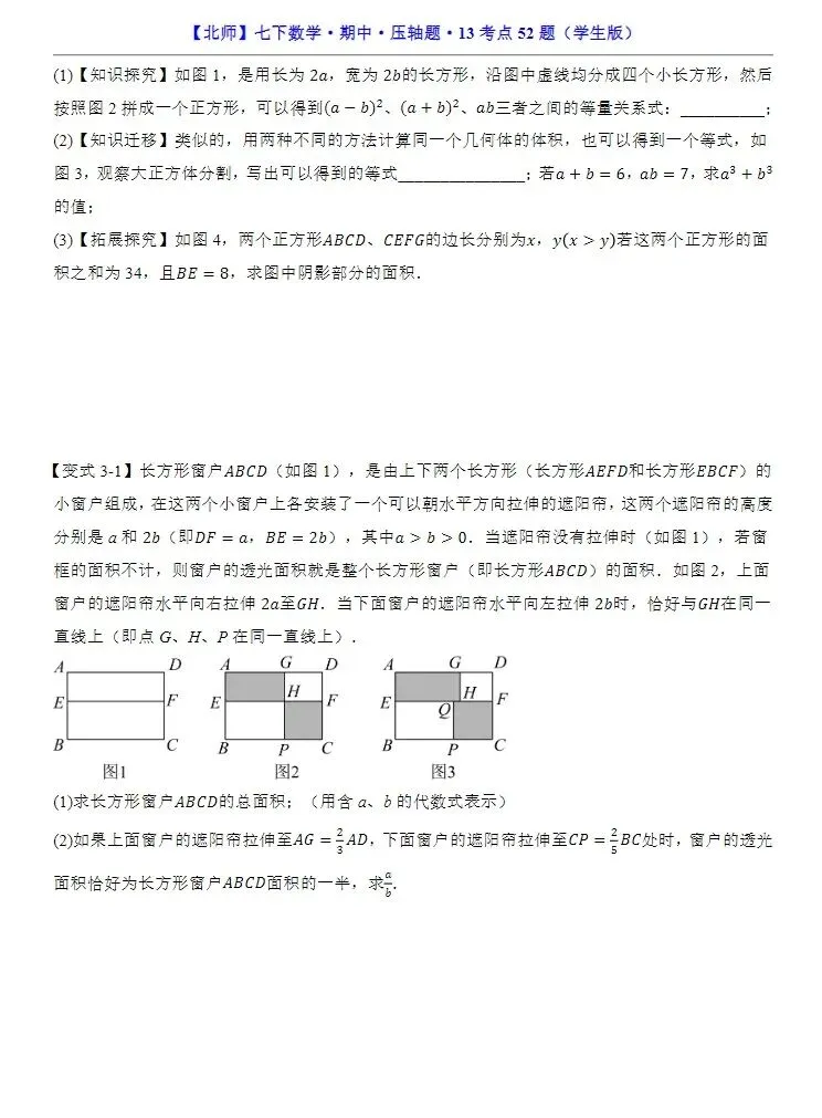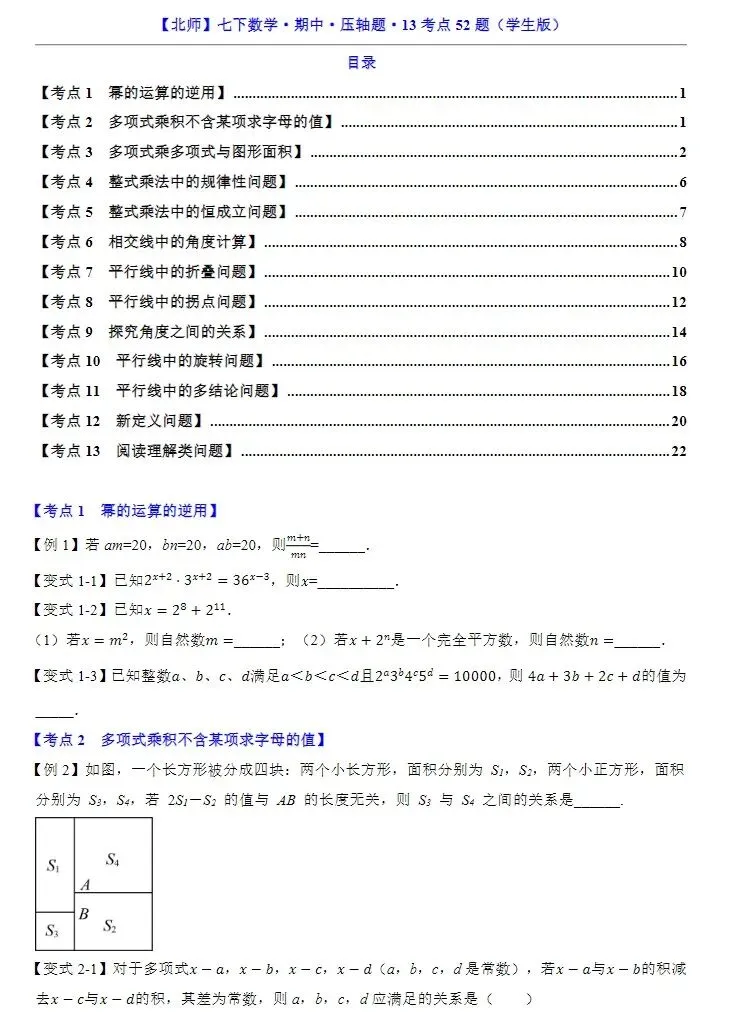 小鹿老师今日分享的资料是:七年级下册北师大版数学期中压轴题13大考点专练