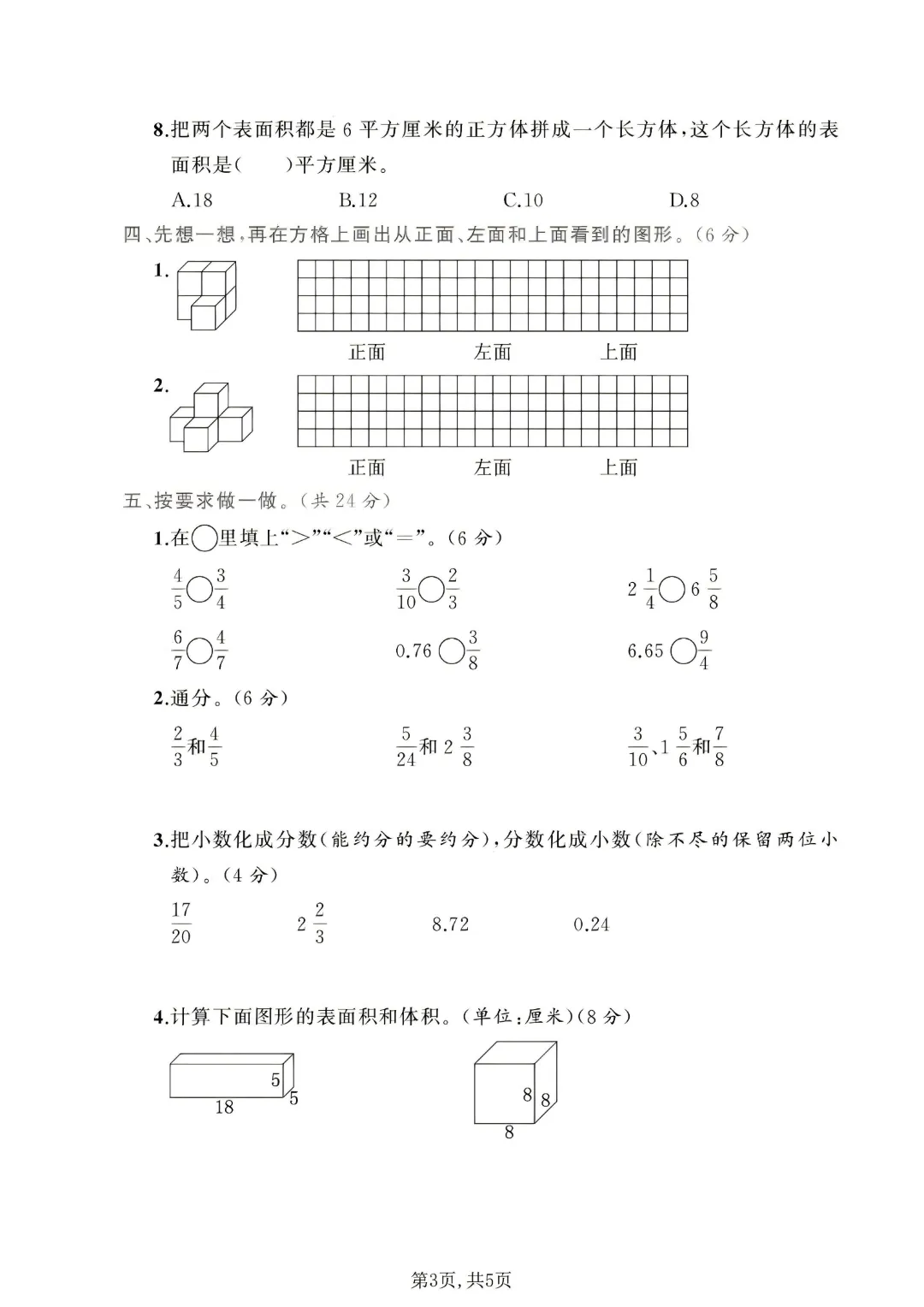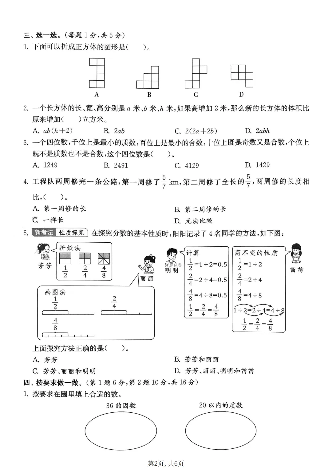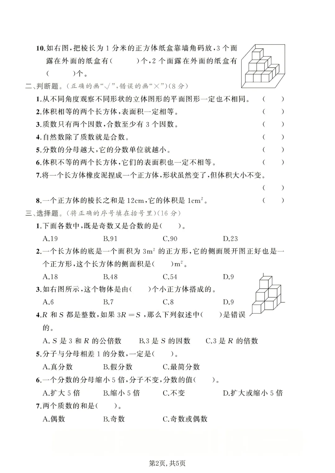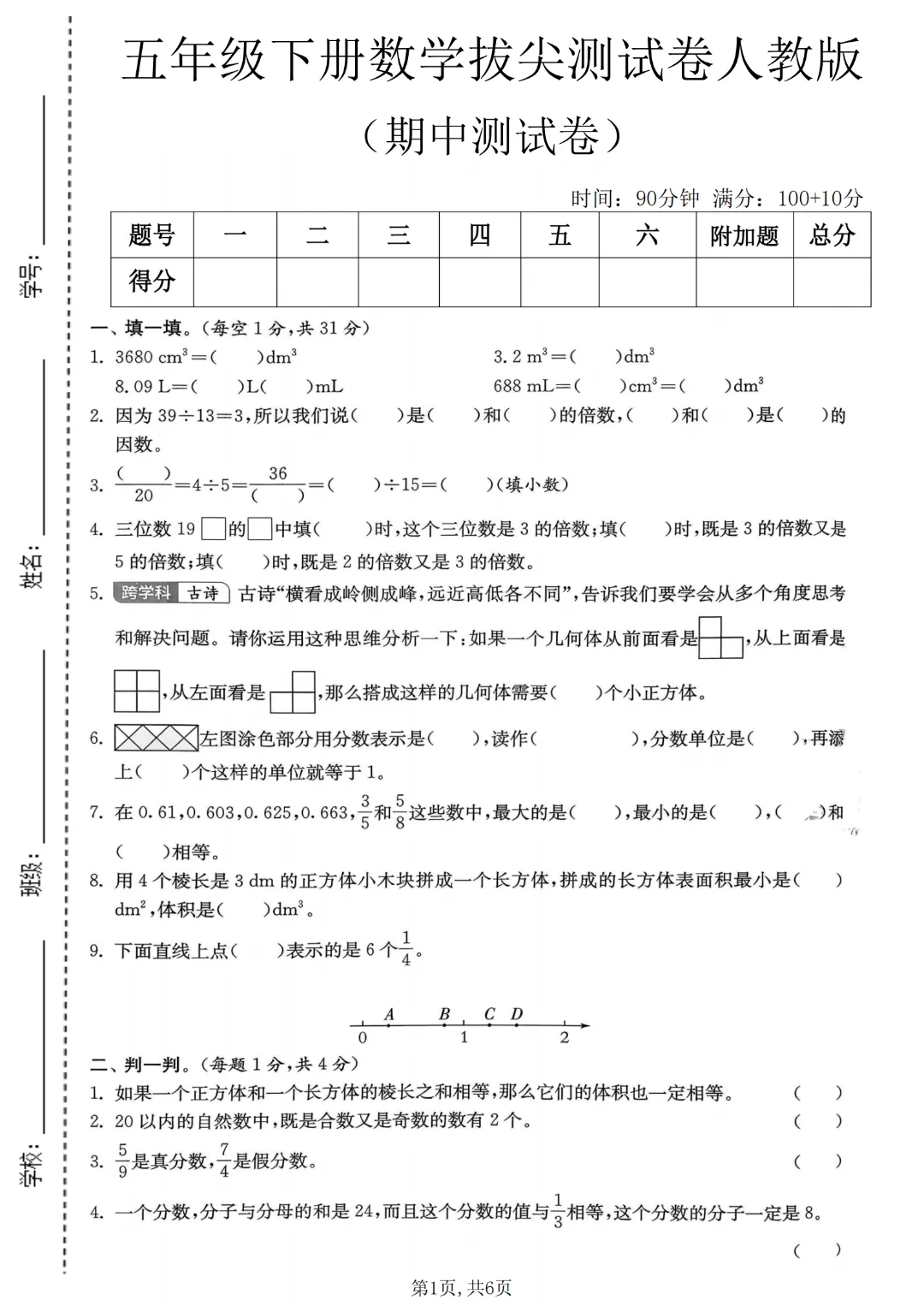 2026年春人教版五下数学期中测试卷电子版可打印