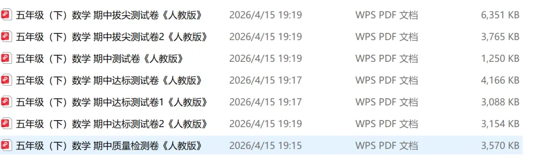 课程进行到4月中旬,临近期中考试,今日特意整理了五年级下册人教版数学期中试卷,便于孩子们复习巩固已学知识,及时查漏补缺。英语版本实在是太多了,如有需要可留言,整理完,发送网盘资料给你。