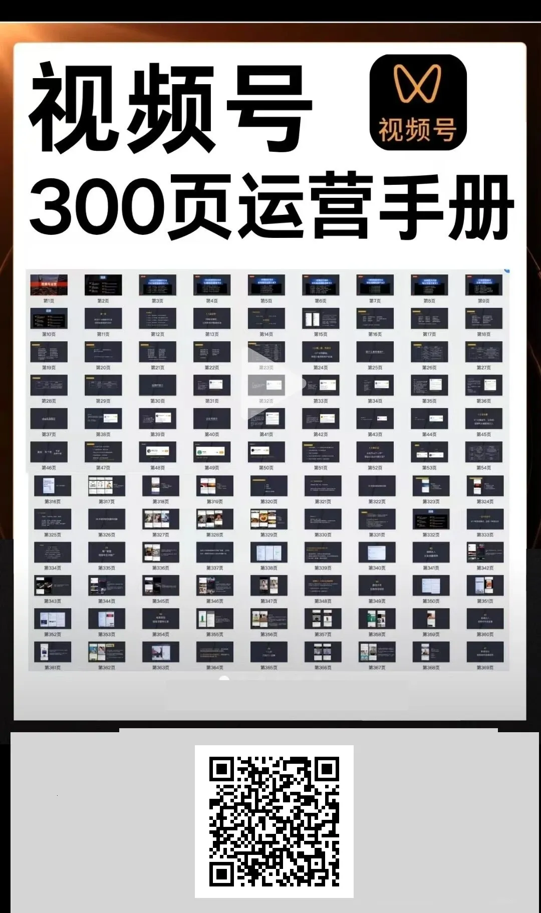 今天给大家分享一份《视频号精细化运营手册》,系统化的视频号运营教程,全文共374页,非常全面!本手册从流量运营、账号搭建、数据增长、流量变现四个维度出发,围绕视频号的运营目标拆解、流量逻辑、运营思路、IP塑造、内容sop、素材库搭建、增长策略、数据分析工具等手把手教你运营一个视频号。