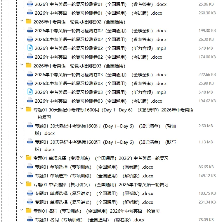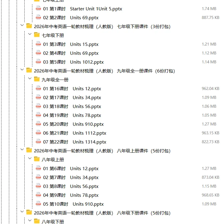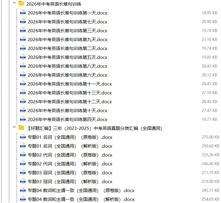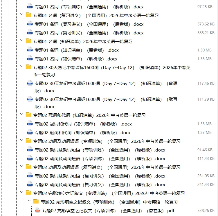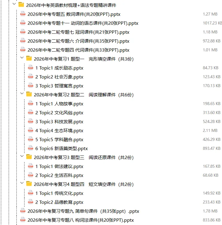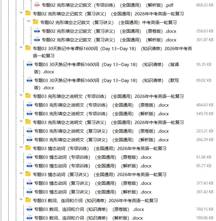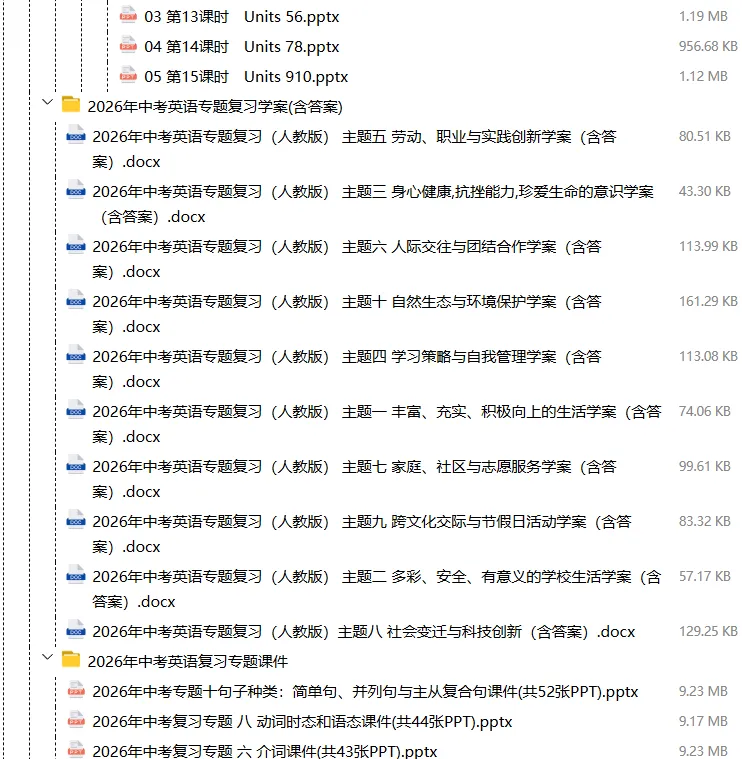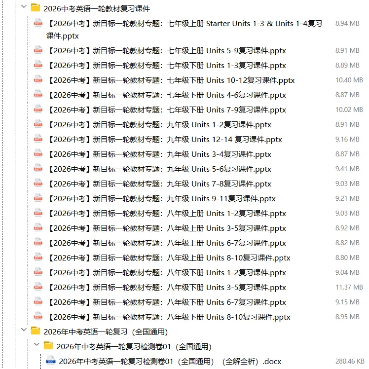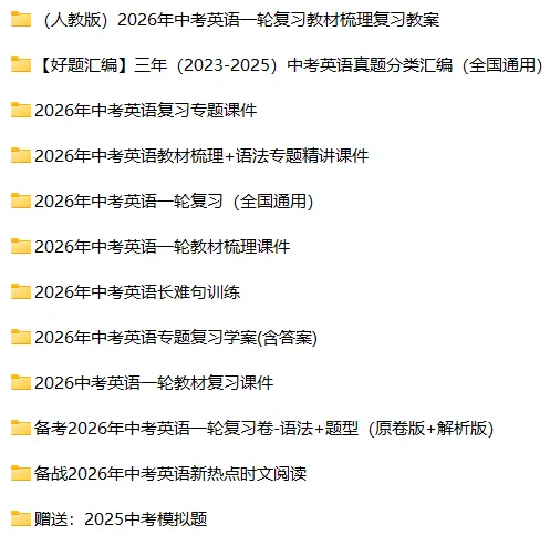 【电子版】2026春中考英语(全国通用)第一轮复习资料教材梳理+语法专题精讲课件+长难句训练+复习卷-语法+题型(全套下载) 可编辑打印