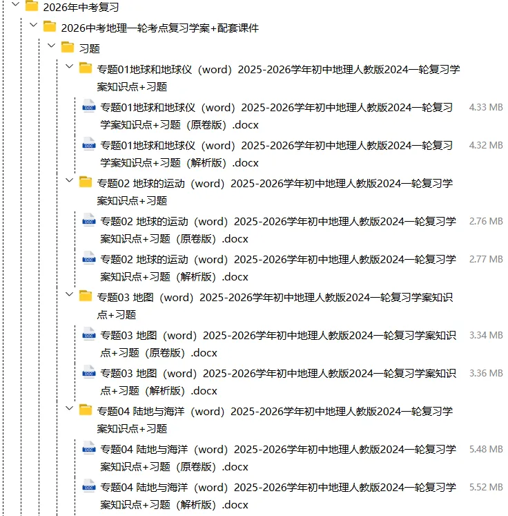 【电子版】2026春中考地理(全国通用)第一轮复习知识梳理+主题突破教案+复习分层练+复习学案(全套下载) 可编辑打印
