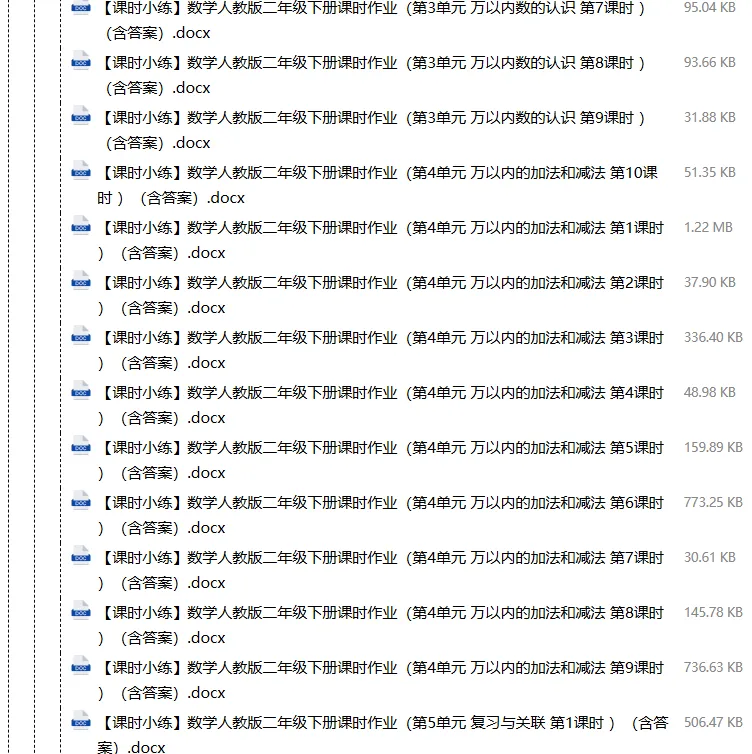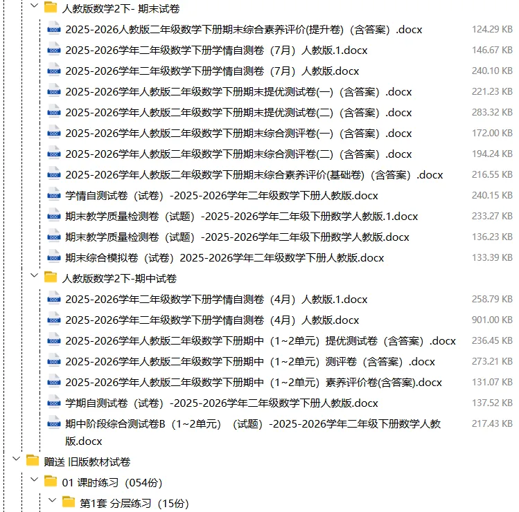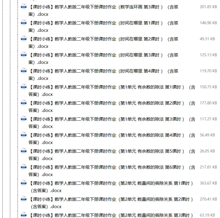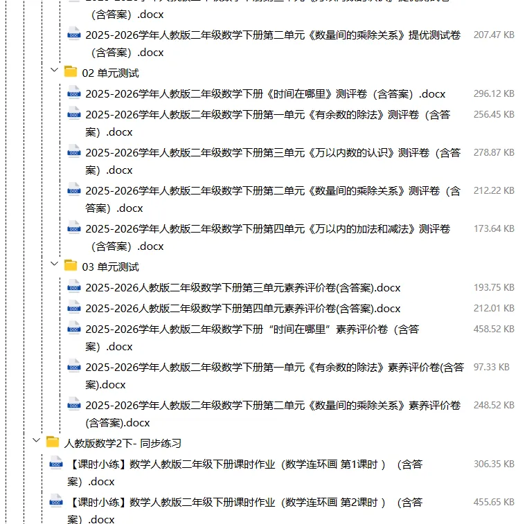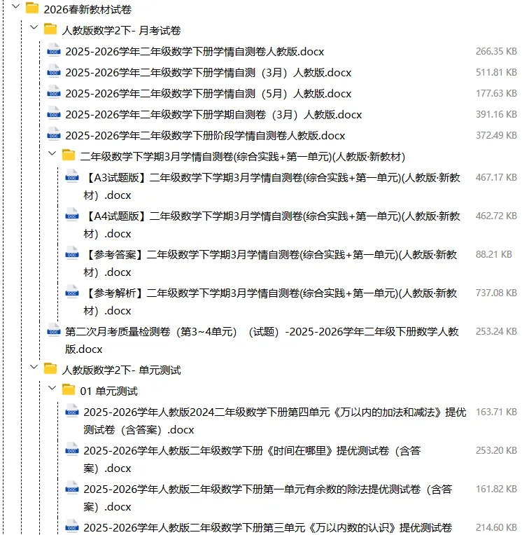 【电子版】2026春人教版小学二年级数学下册 (课时练习+单元测试+月考试卷+期中试卷+期末试卷)全套下载 可编辑打印