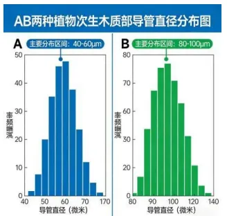 解析:B:环纹/螺纹导管管径小,输水效率低。