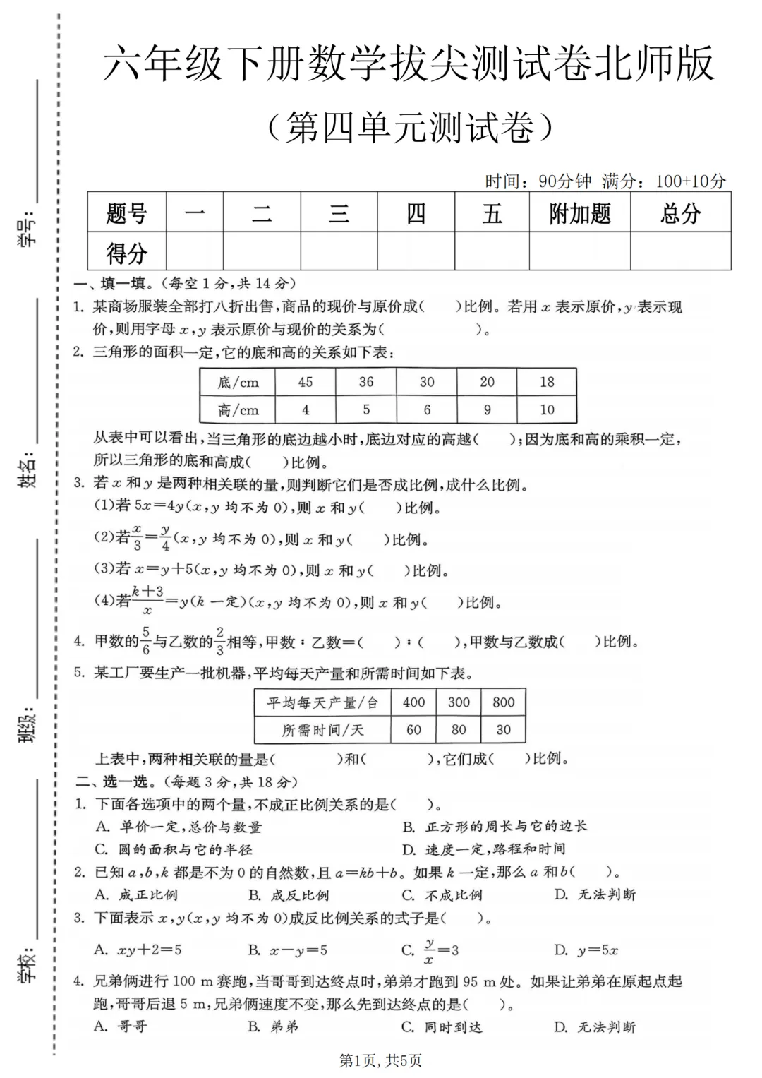 2026年春新六年级下册北师大版数学《期中考试测试卷+1-4单元测试卷》共8套附答案解析‖可打印