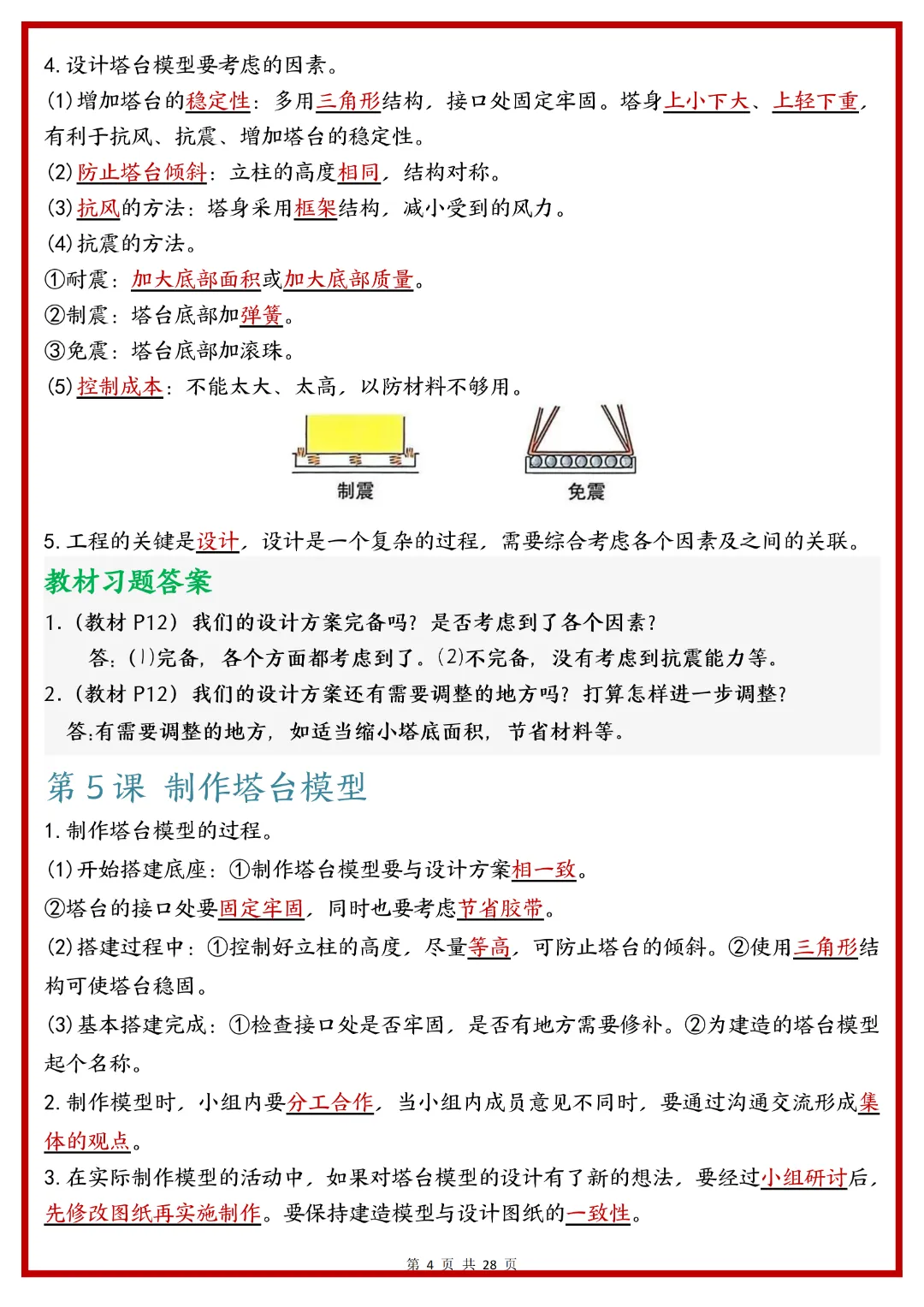 2026新教科版六年级下册科学《期中高频考点》完整电子版可打印