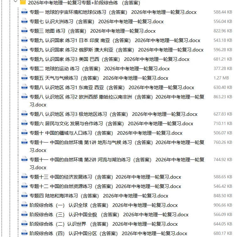 【电子版】2026春中考地理(全国通用)第一轮复习知识梳理+主题突破教案+复习分层练+复习学案(全套下载) 可编辑打印