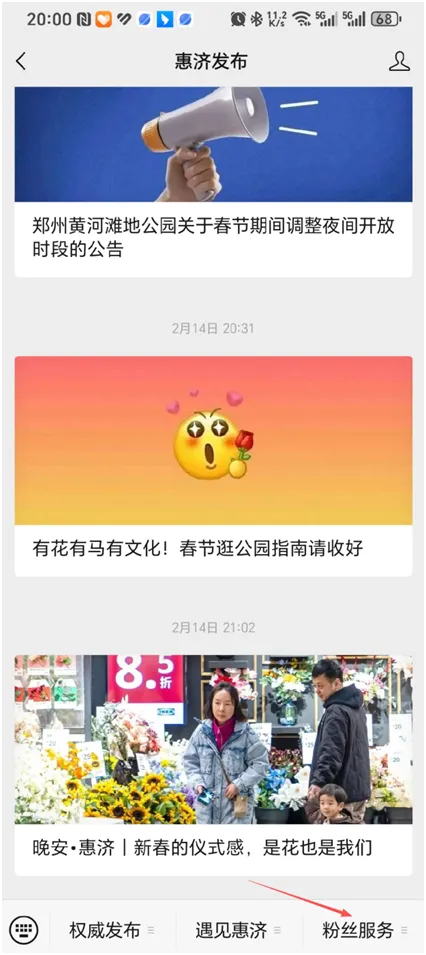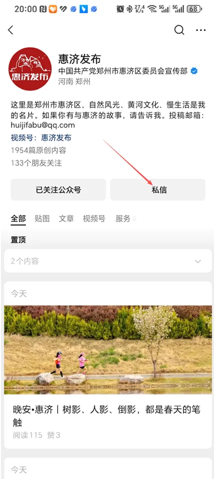 3. 点击私信进入惠济发布公众号主页面。