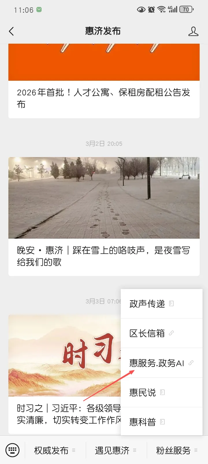 5. 点击弹出菜单里的“惠服务.政务AI”。