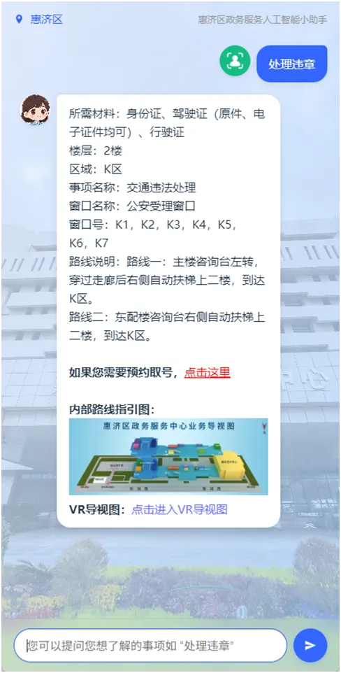示例:直接输入 “处理违章”“社保怎么办理” 等你要办的事项