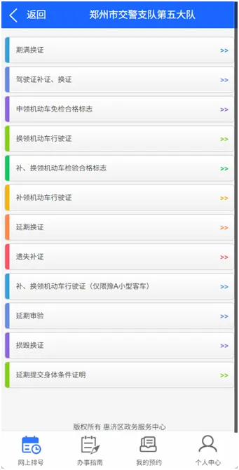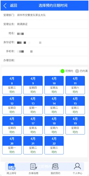 ➡️点击后跳转到预约页面,按提示选择办理时间、事项,完成预约