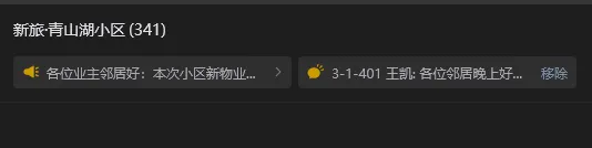 鉴于微信群超过200人后无法通过微信群聊二维码进行邀请的机制,业主微信群<新旅青山湖小区>推广较为困难,截至目前业主群在群人数341人,本群仅支持业主身份入群。