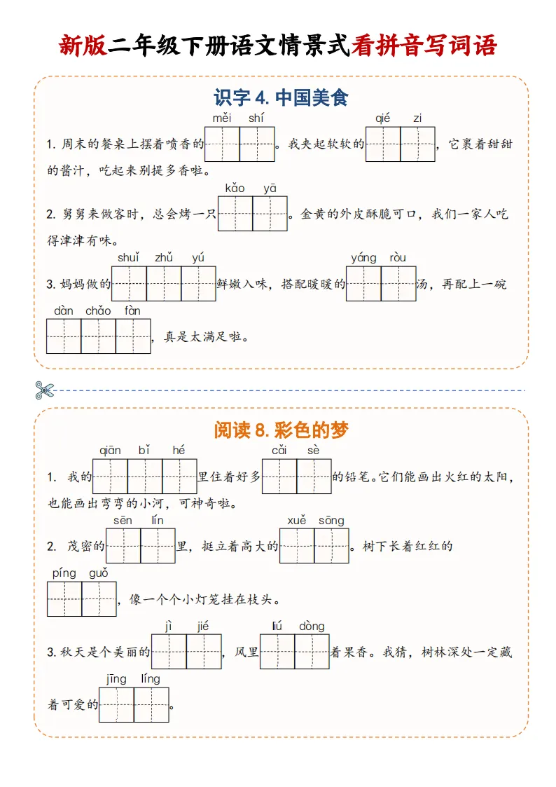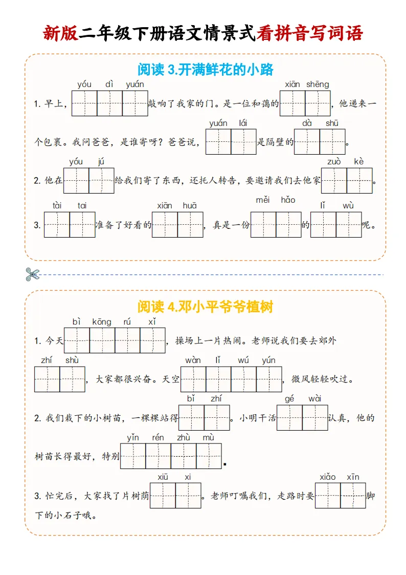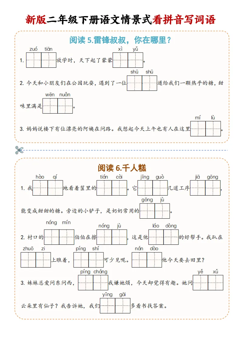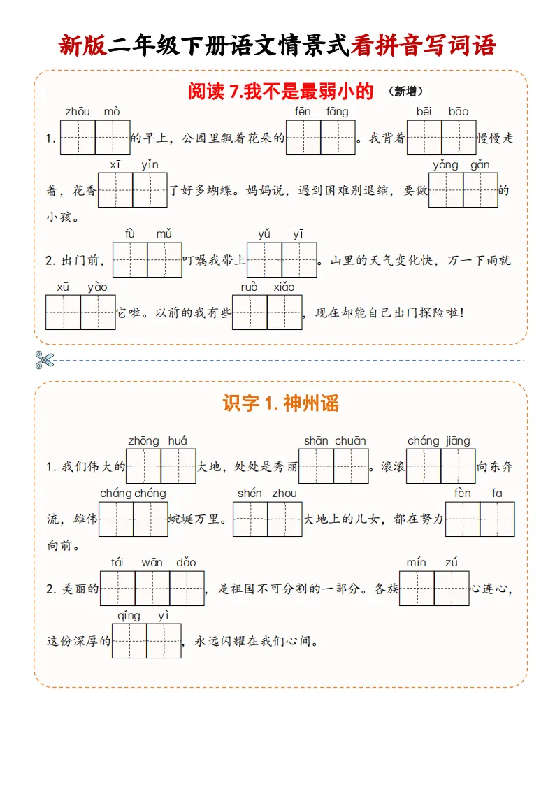 大家好,我是妞妞,专注于1-9年级教育资源分享,今天给大家分享的是:2下《看拼音写词语》,PDF电子版可下载打印。文章末尾可直接领取,✅ 建议收藏+下载,随时给孩子用。💡 如果觉得这份资料对孩子有帮助,欢迎分享到班级群/年级群,让更多家长和孩子受益!🔖 支持正版,让我们一起为孩子提供更优质的学习资源。📚手把手教你打印,又快又好又方便又省钱。