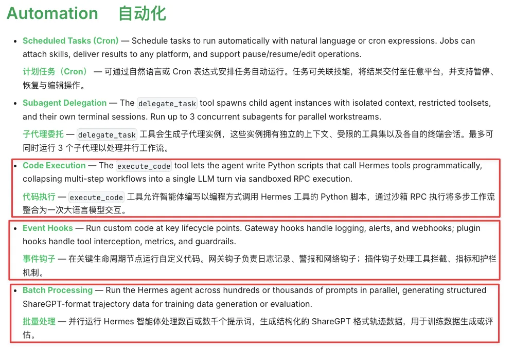 读完官方文档,发现hermes-agent比openclaw从架构上改进了很多痛点