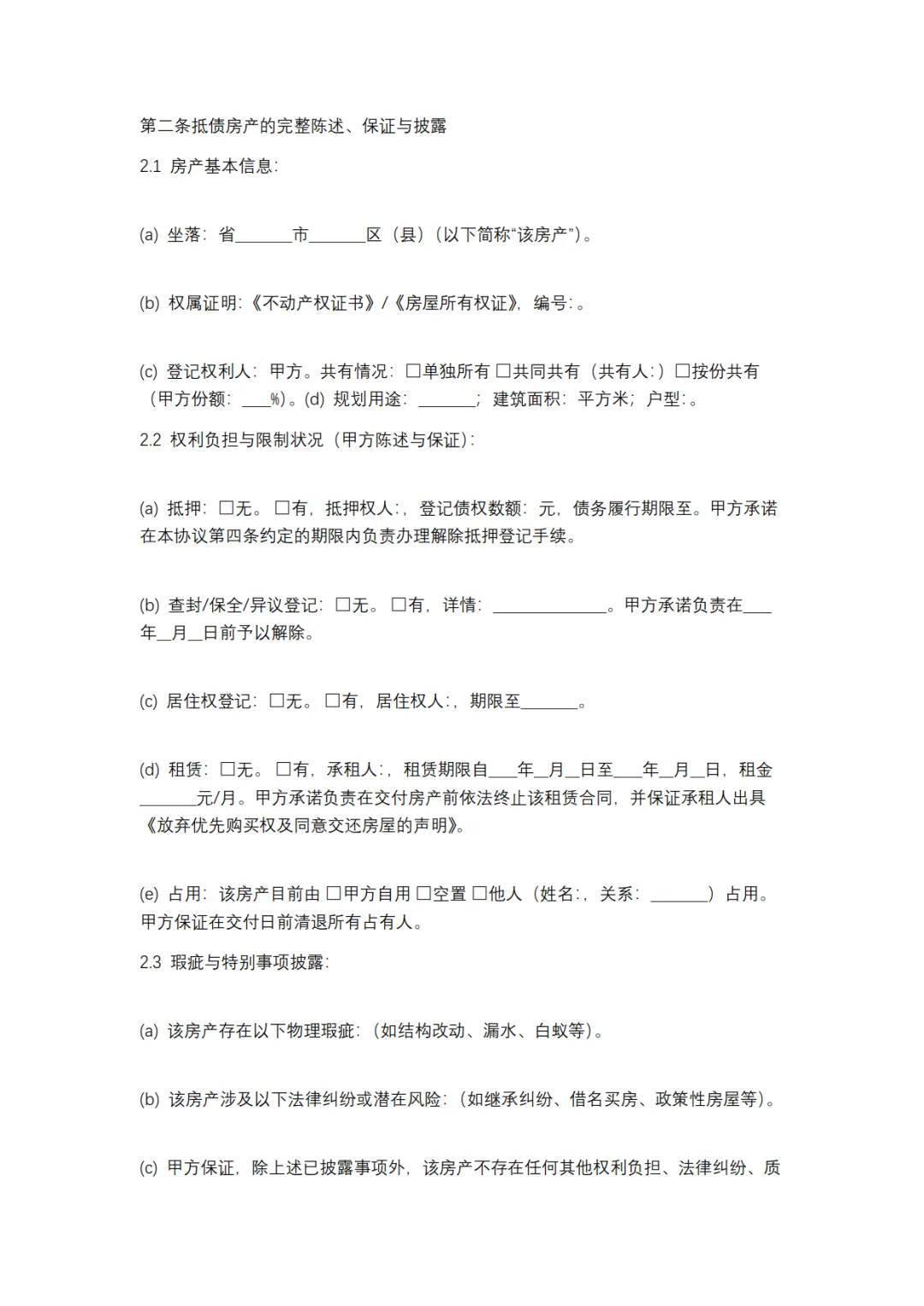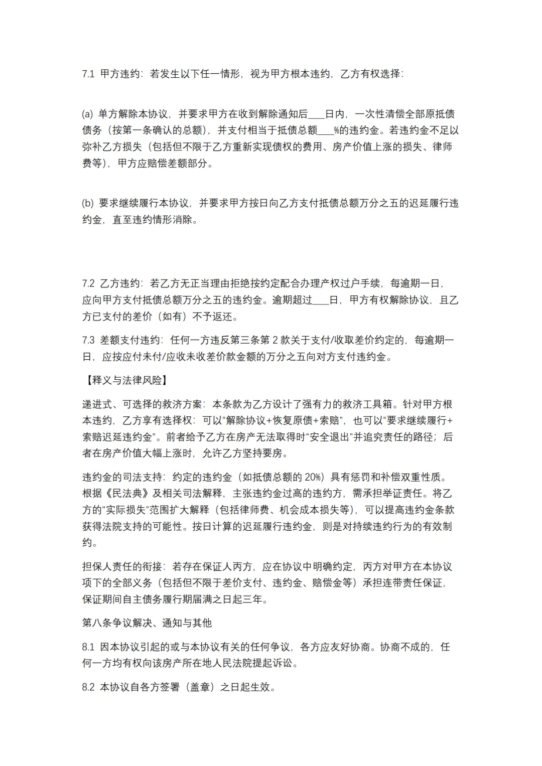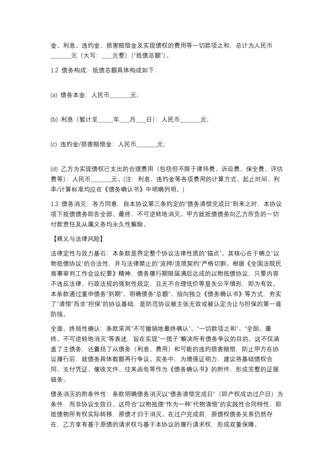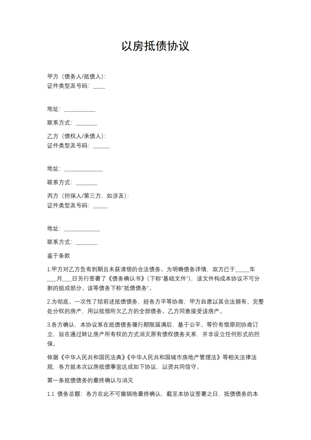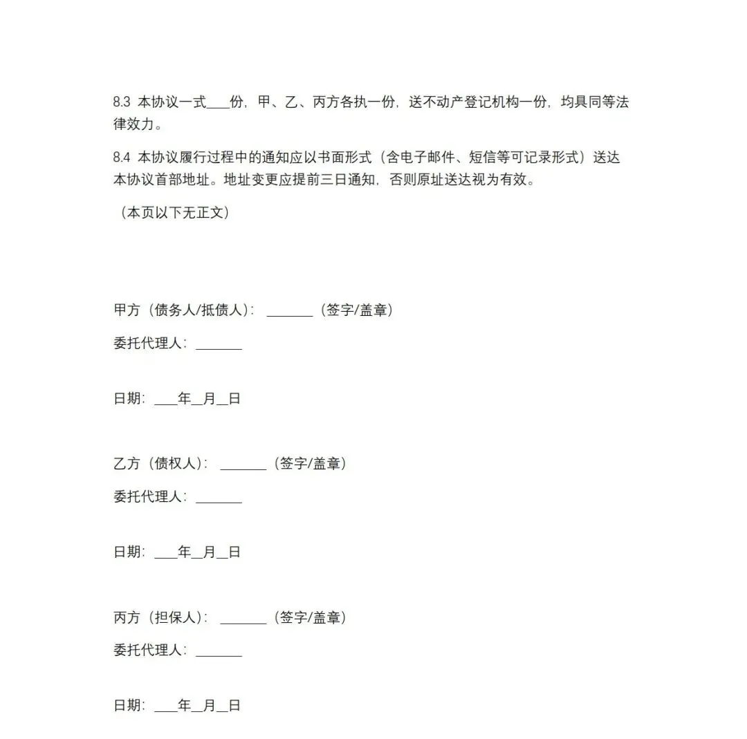 以房抵债协议模板,WORD文档电子版,可免费下载打印