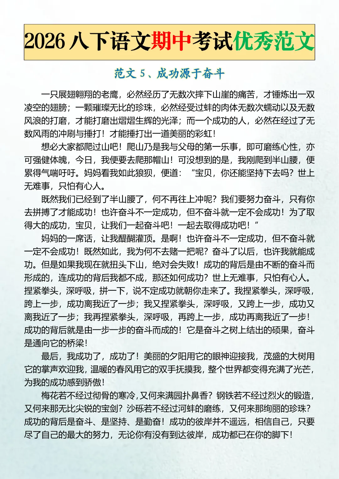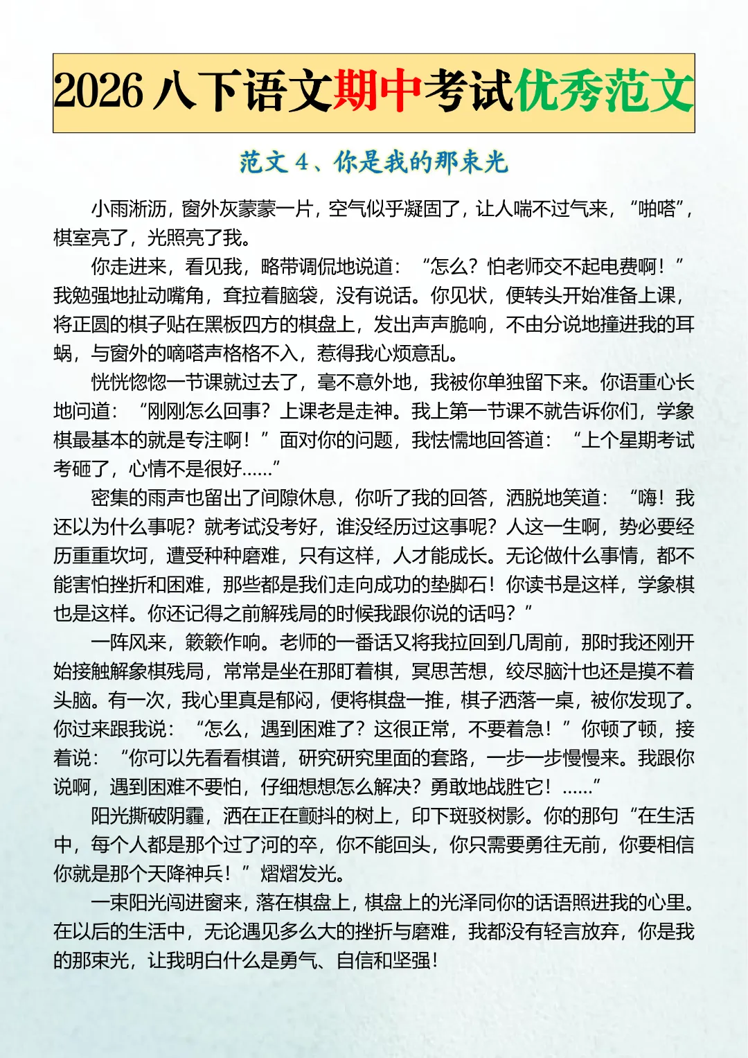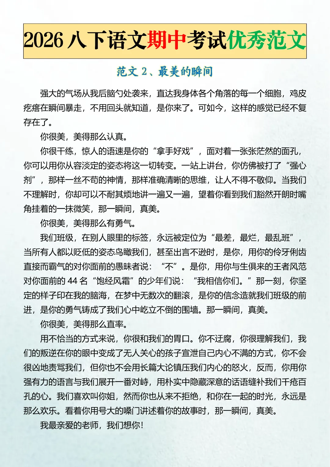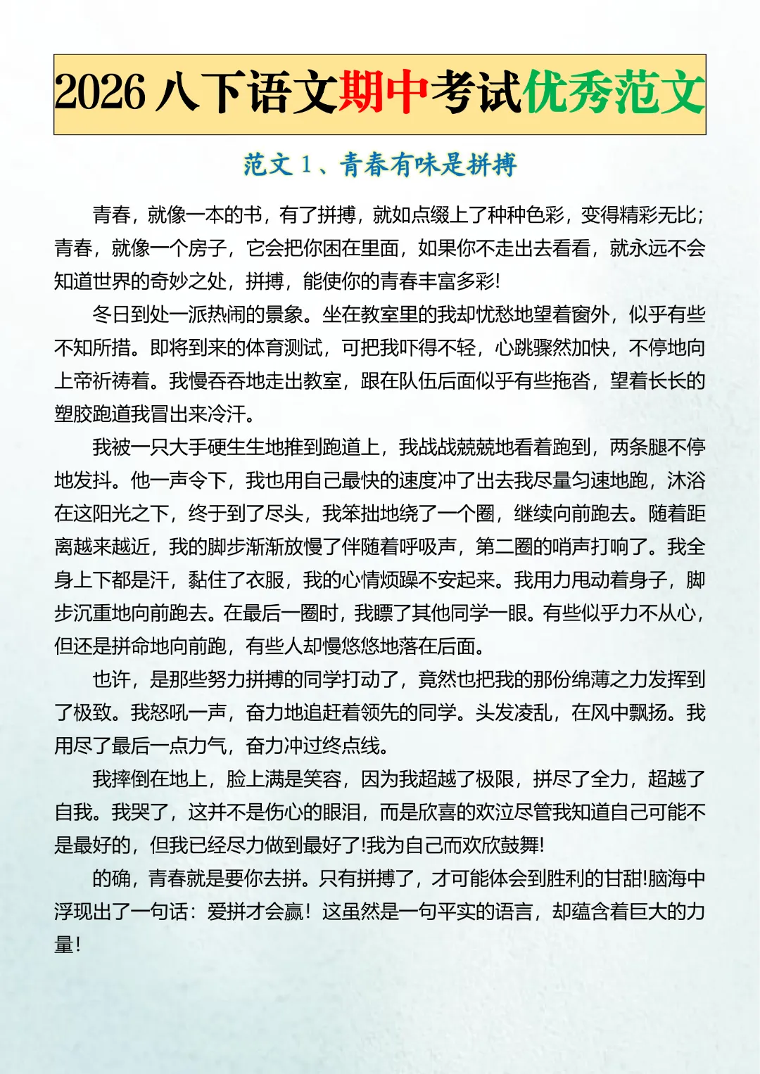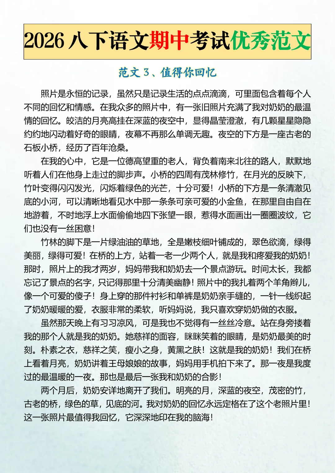 2026八年级下册语文《期中优秀范文》电子版可打印