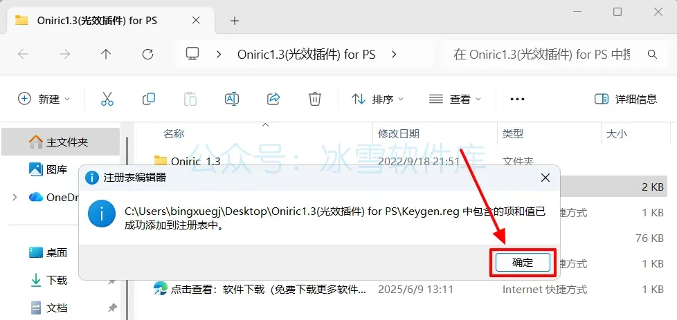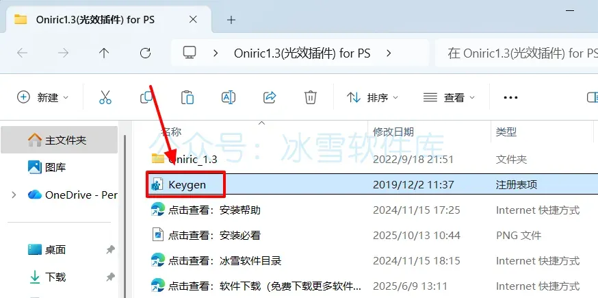 5.打开安装包解压后的【Oniric1.3(光效插件) for PS 】文件夹,双击运行【Keygen】。