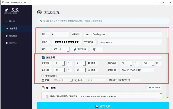 :在这里绑定邮箱、连接并设置发送参数,可根据日常习惯制定发送频率。