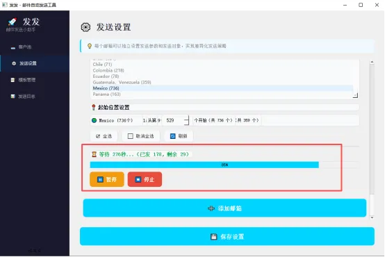发送开始后,还能实时看到发送情况,比如下一封发送时间、已发数量、剩余数量等,全部同步显示。